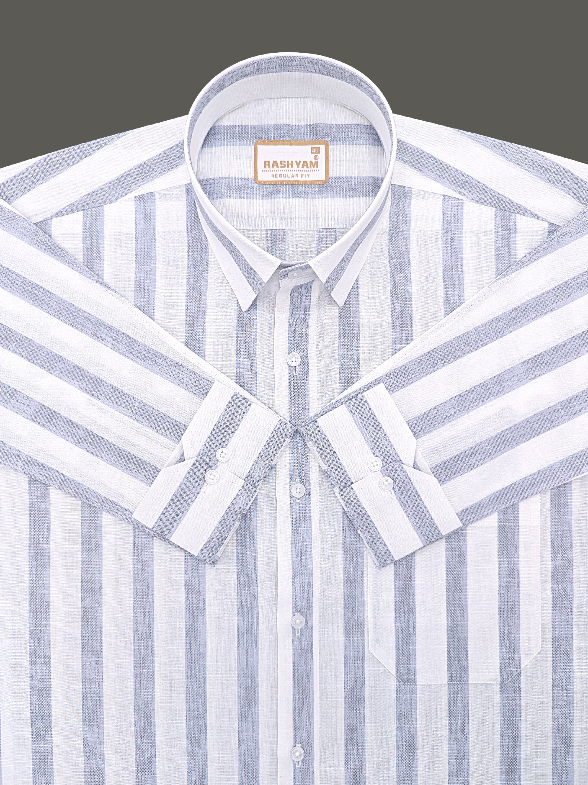 Premium Linen Cotton Bluish Light Line On Cream Shirt For Men