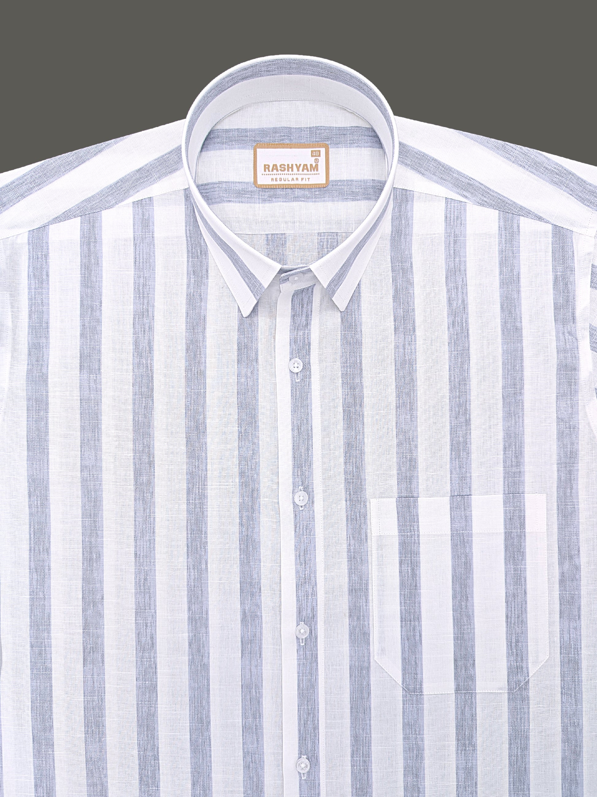 Premium Linen Cotton Greyish Line on White Shirt For Men