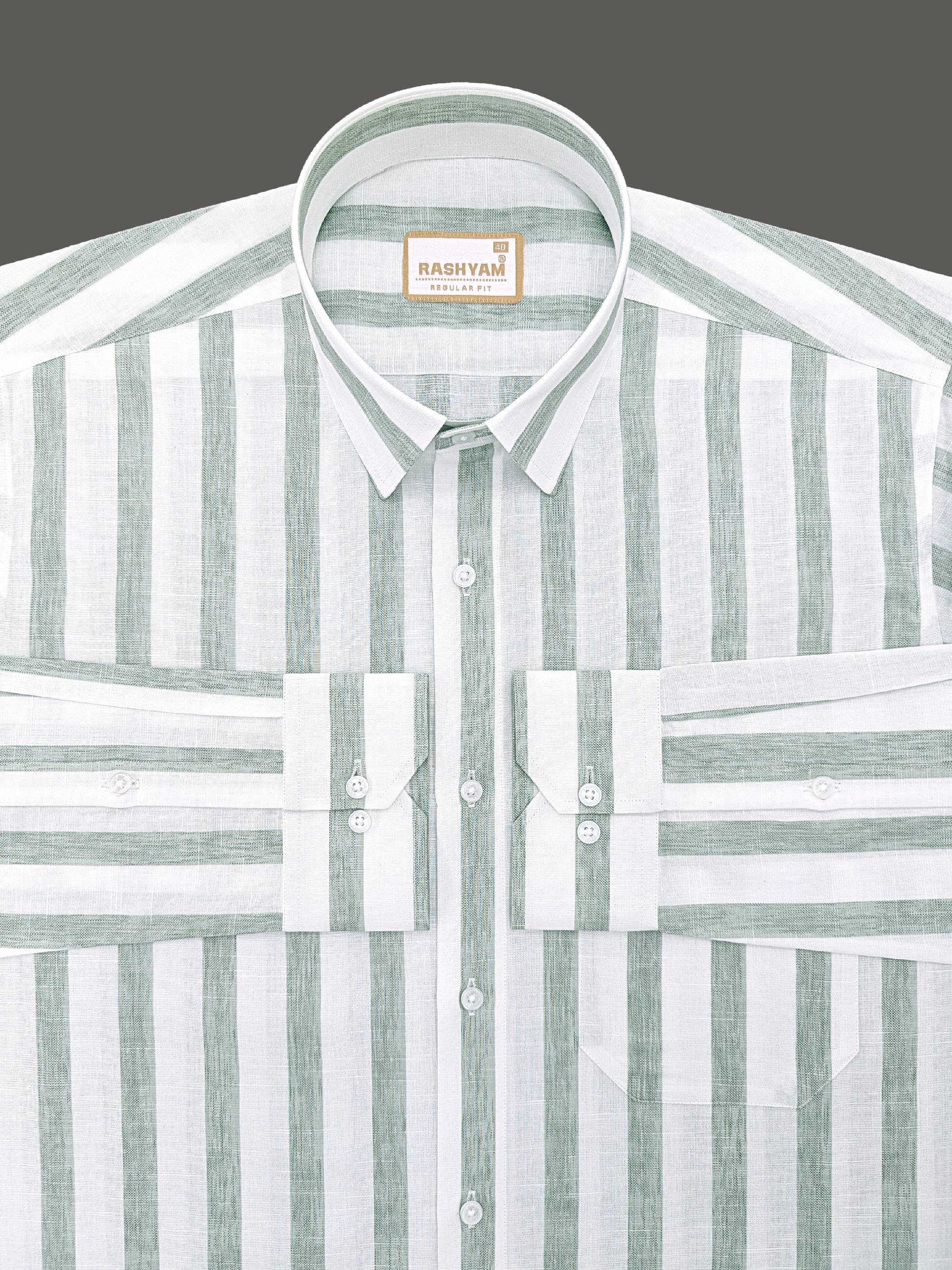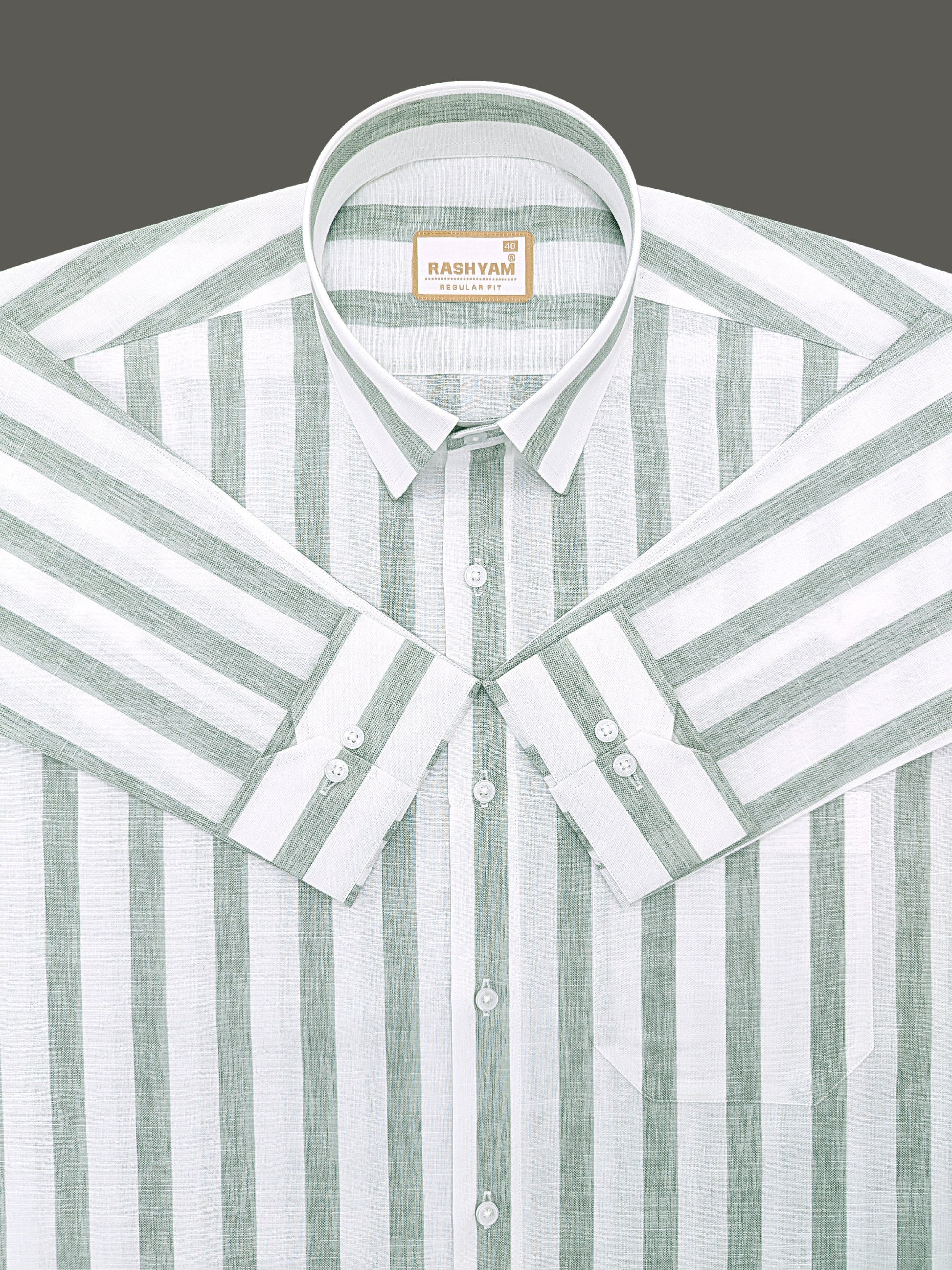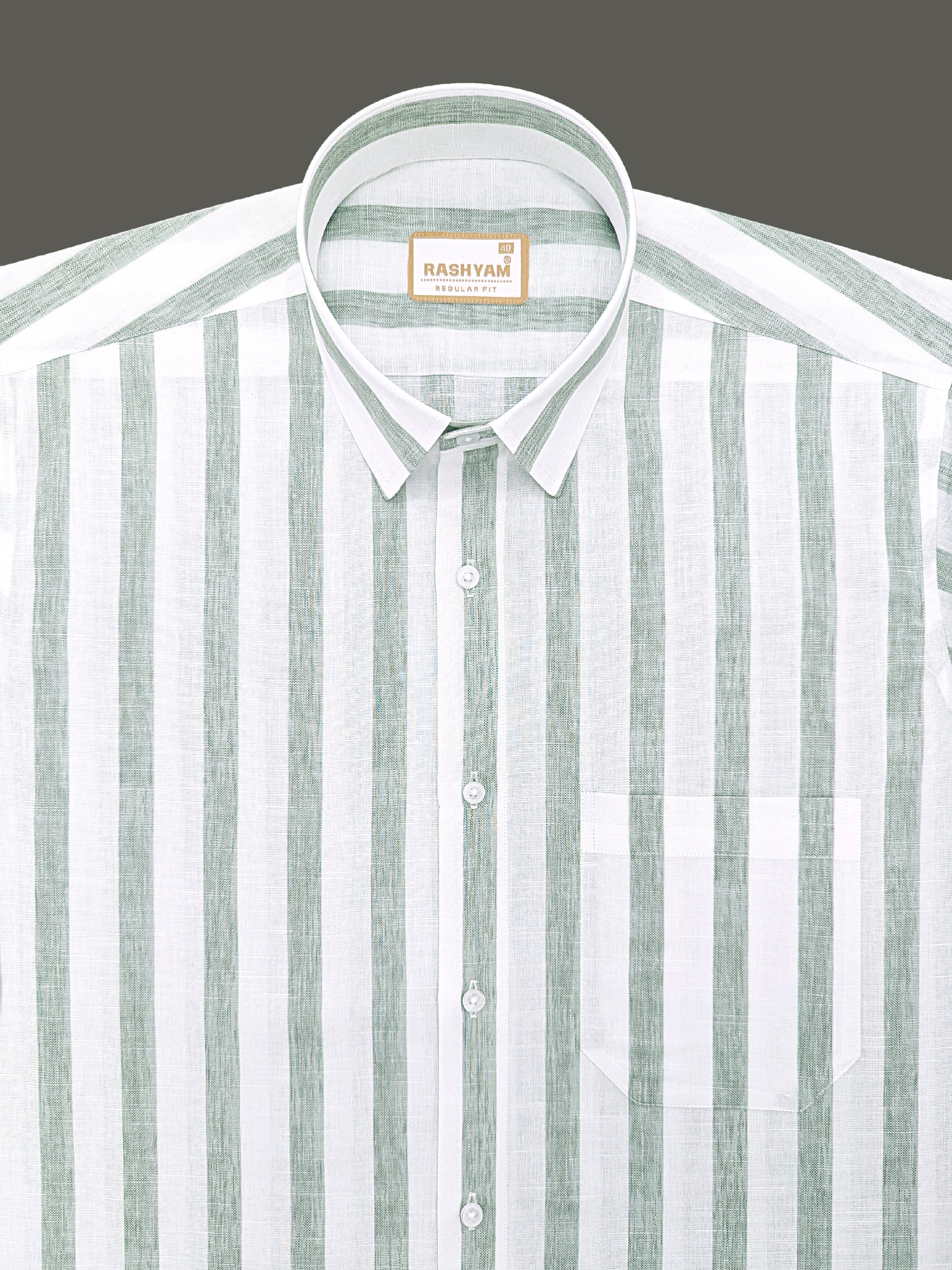 Premium Linen Cotton Greenish Line on White Shirt For Men
