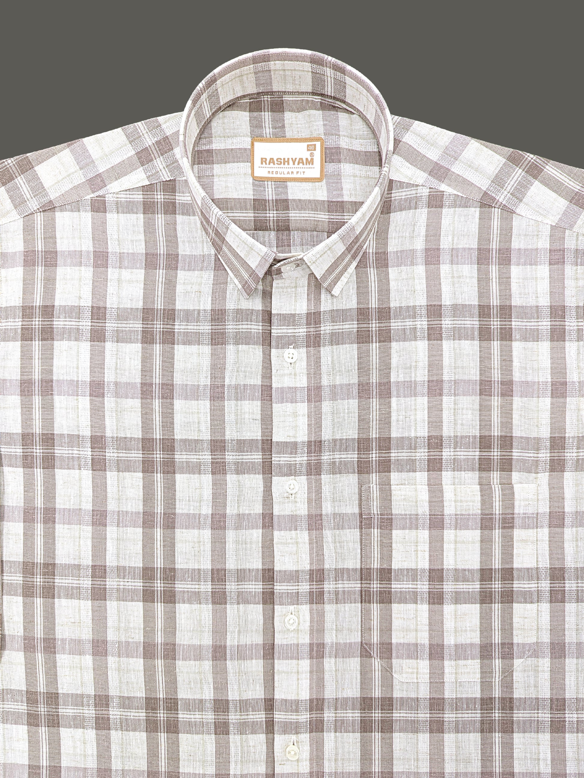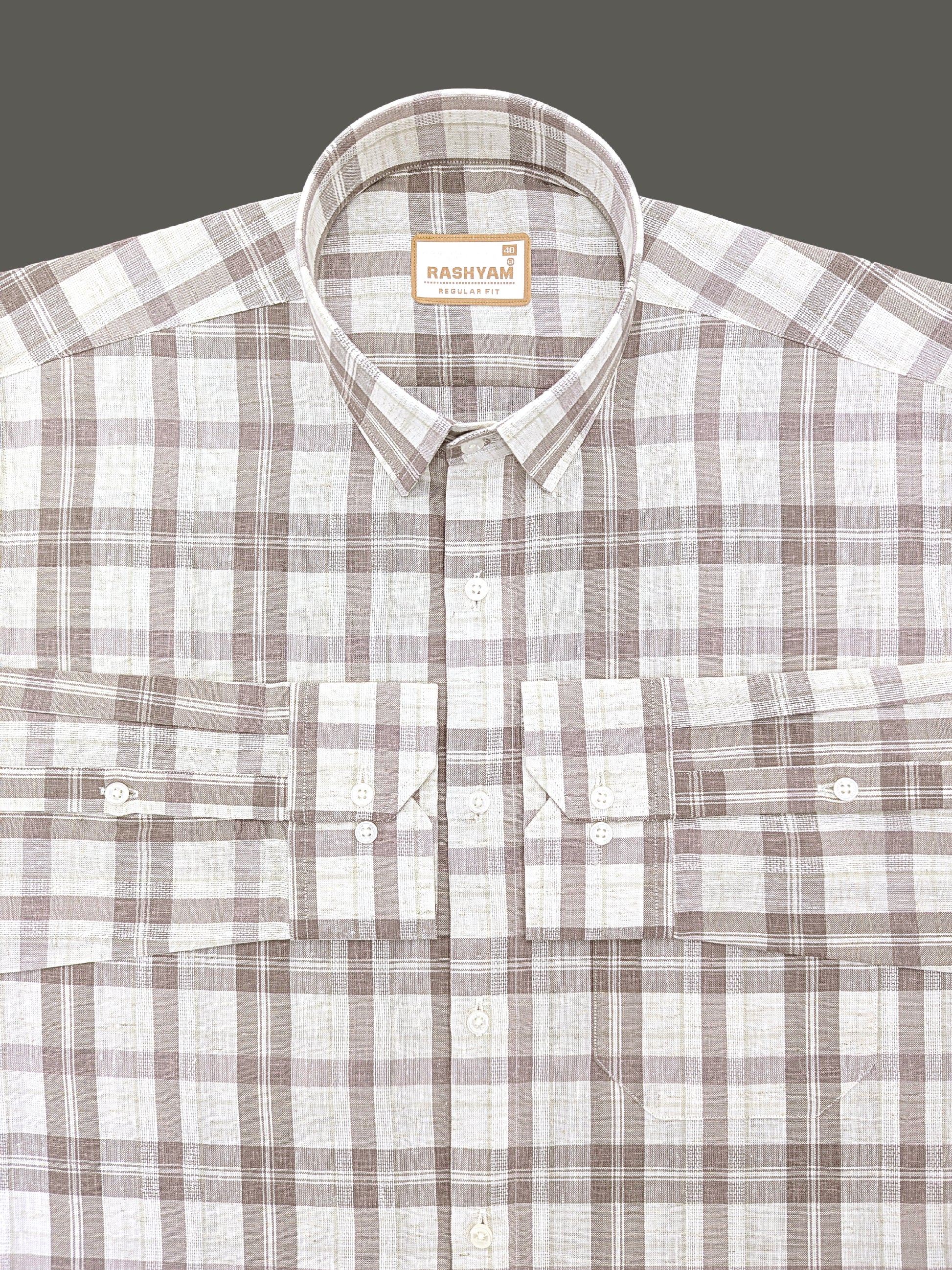 Premium Cotton Warm Beige with Dusty Brown Checks Shirt For Men