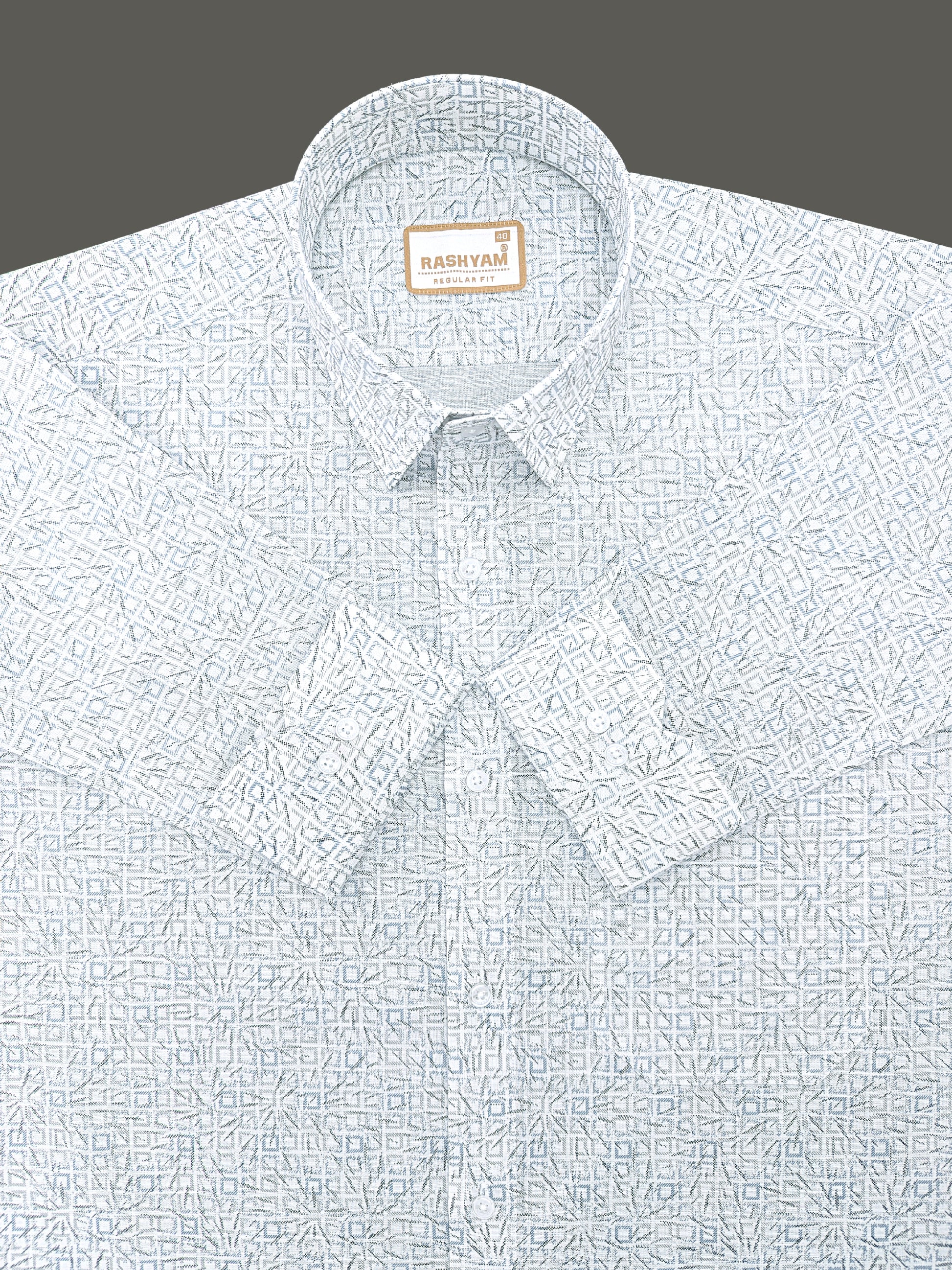 Premium Linen Cotton Arctic Geometry Print On White Shirt for men