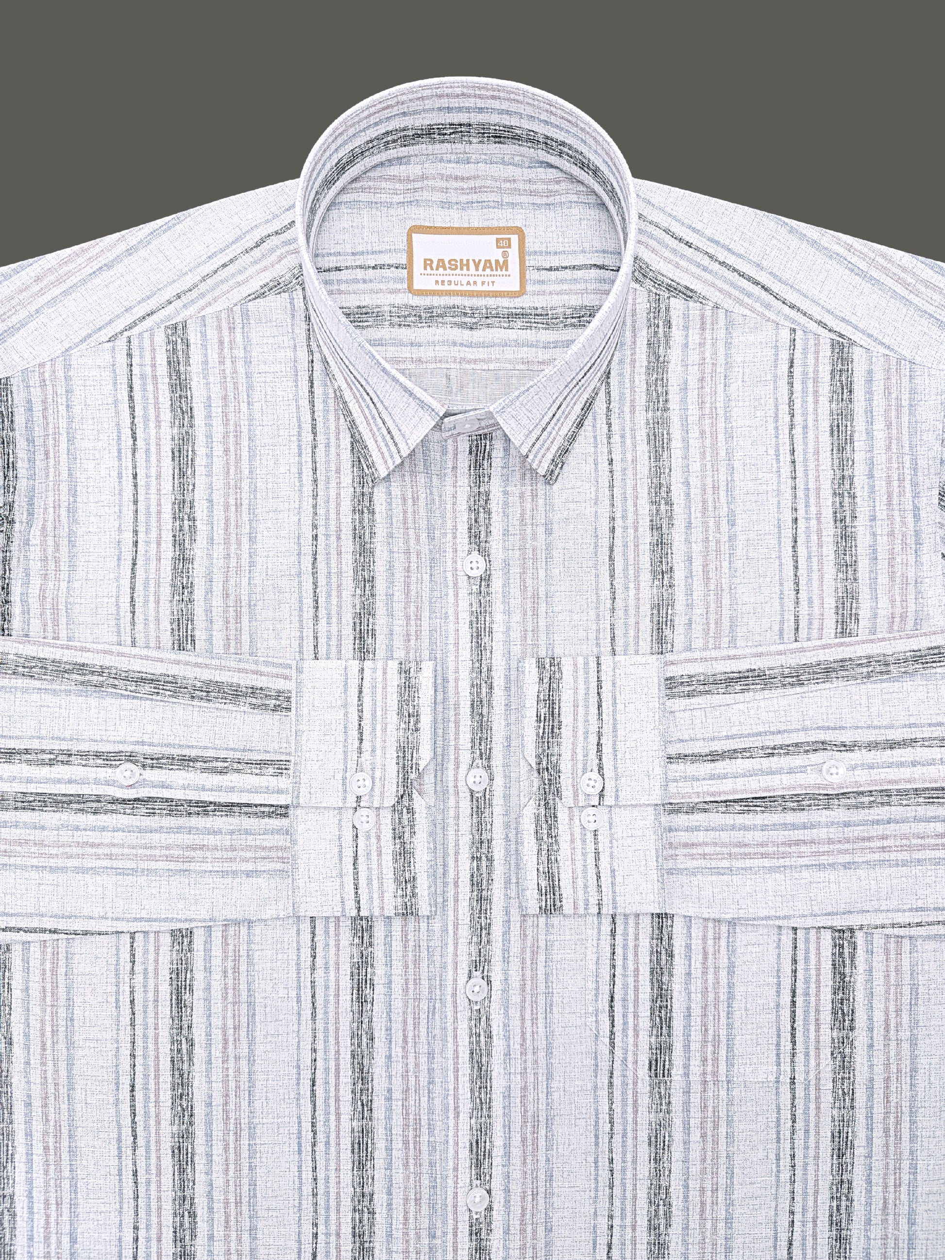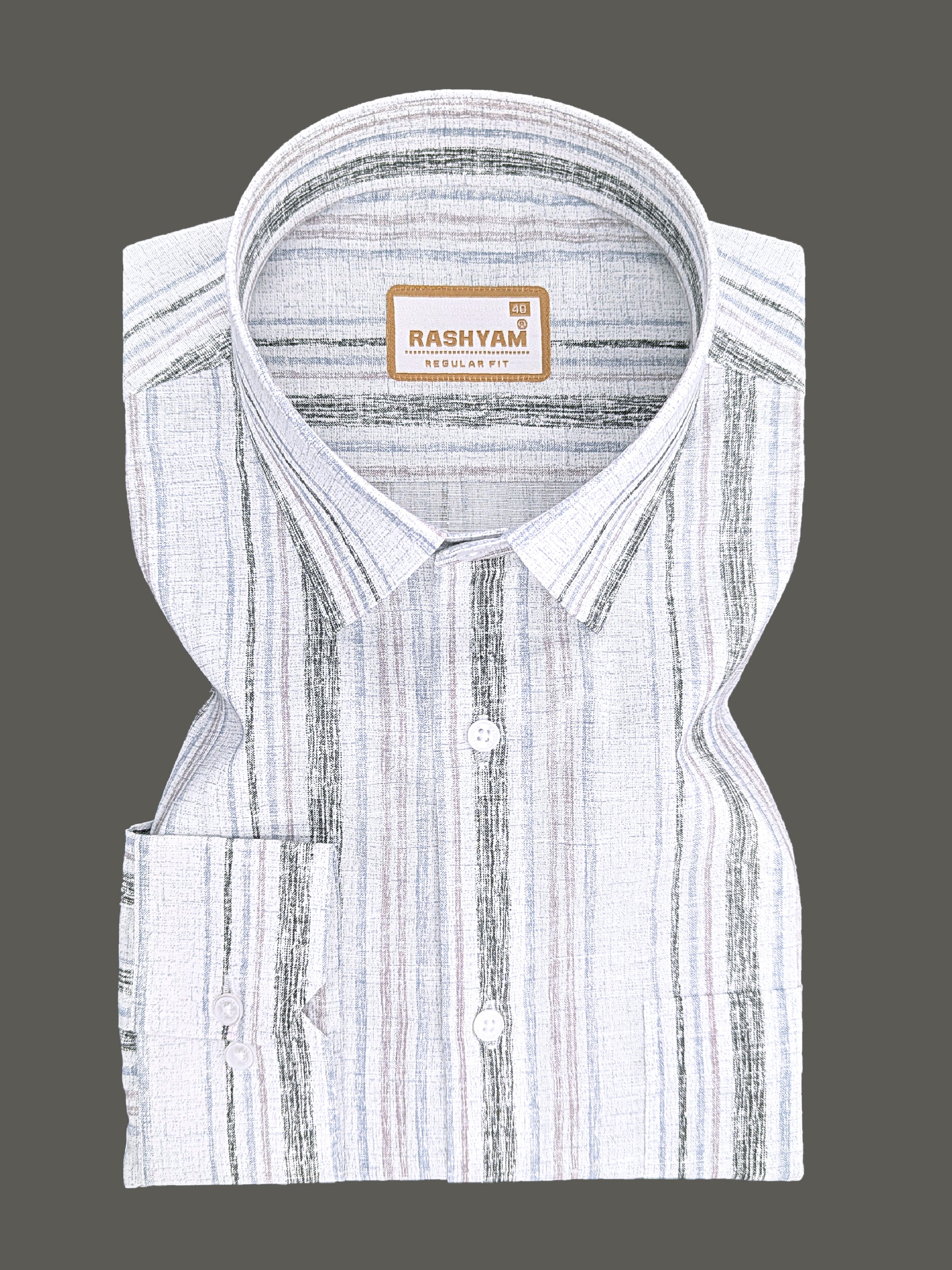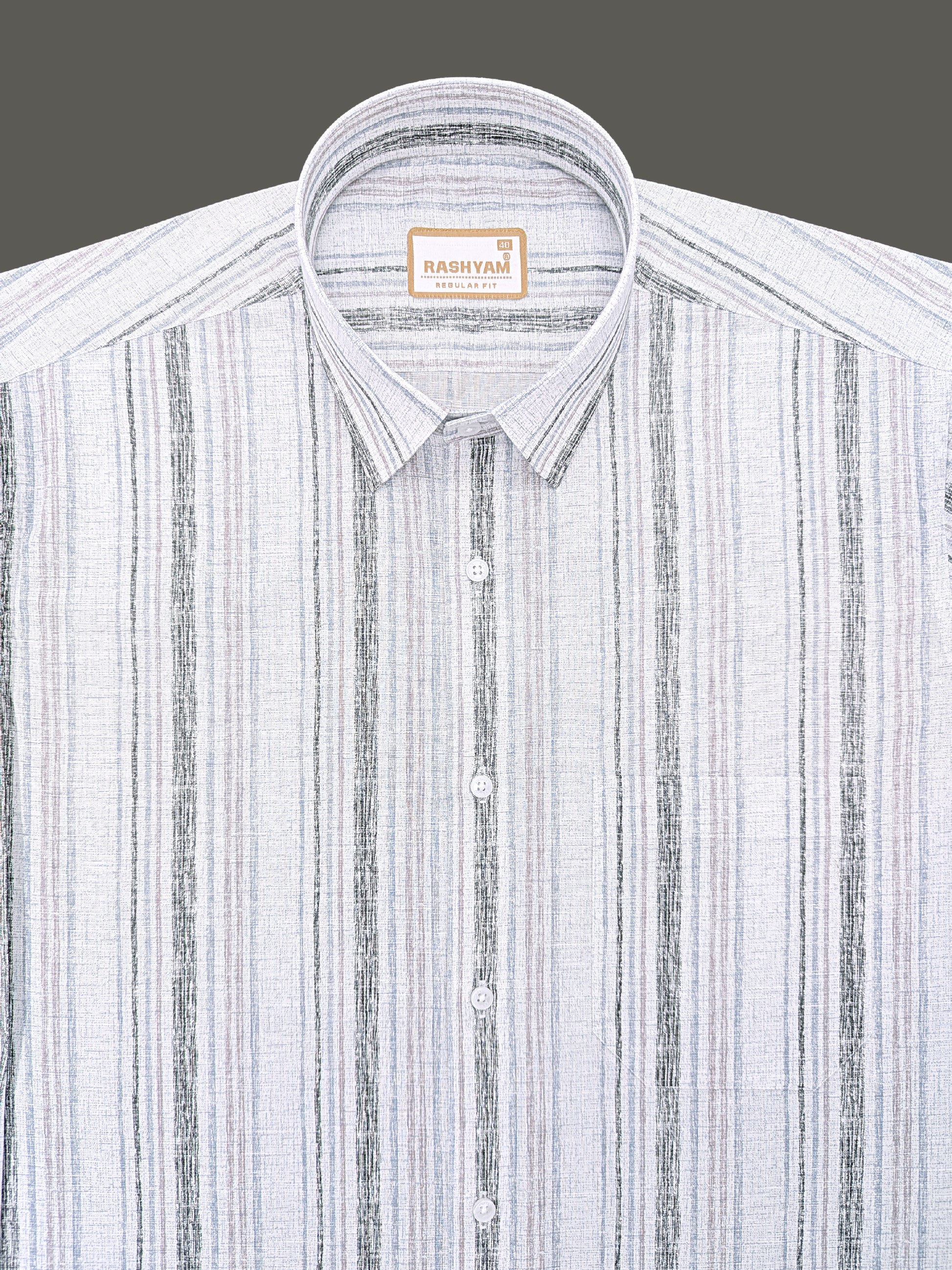 Premium Linen Cotton Black And Blue Multi Line on Greyish White Formal Shirt