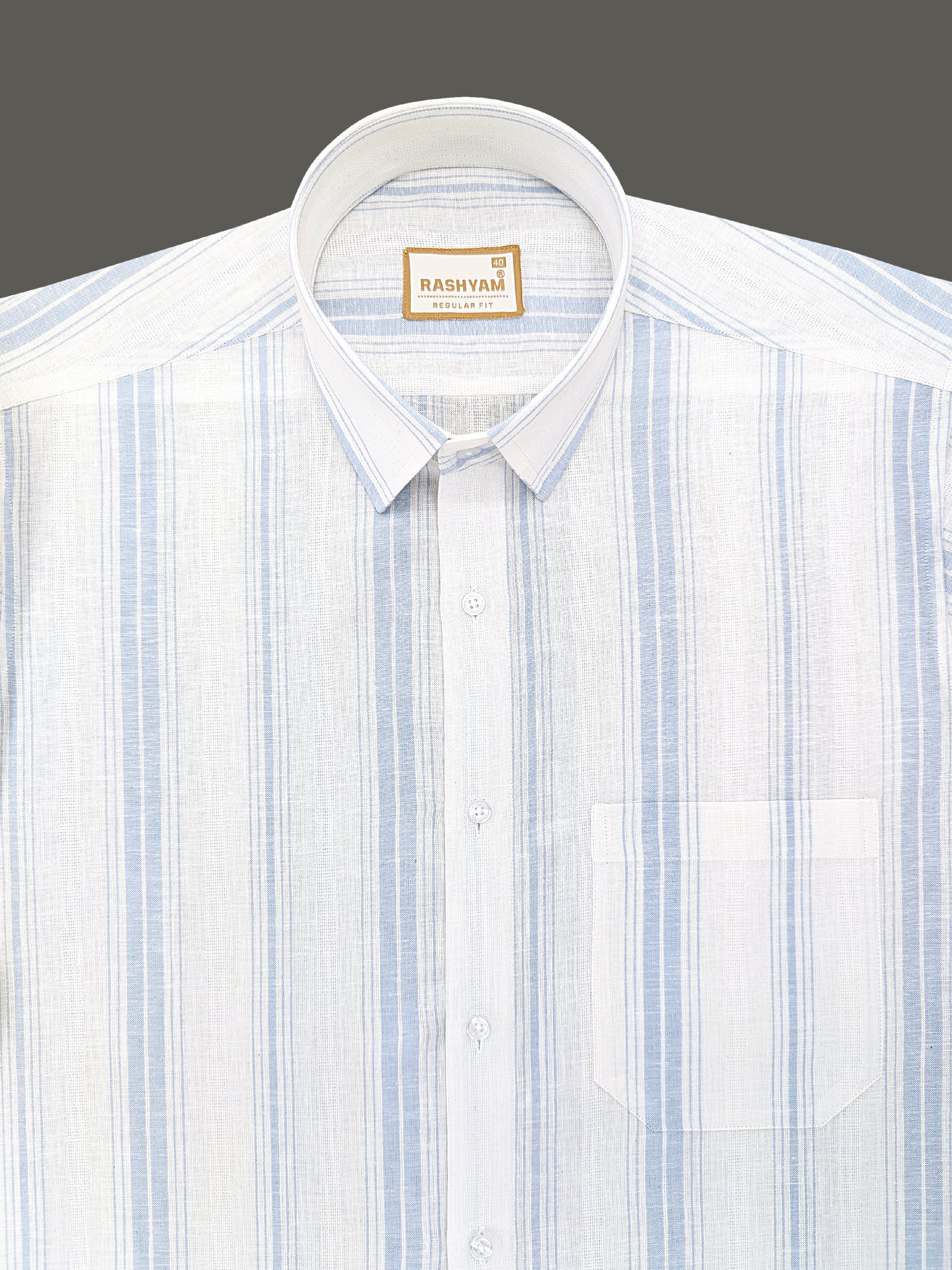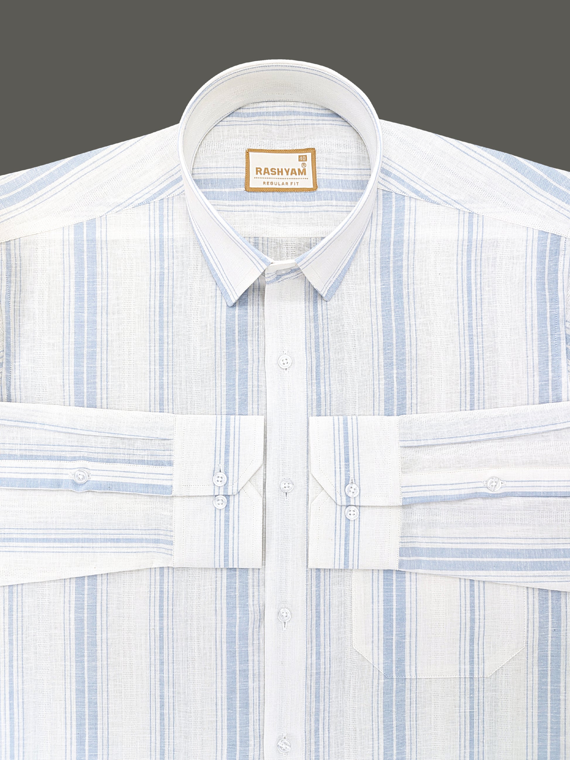 Premium Linen Cotton Blue Line On Bright White Shirt For Men