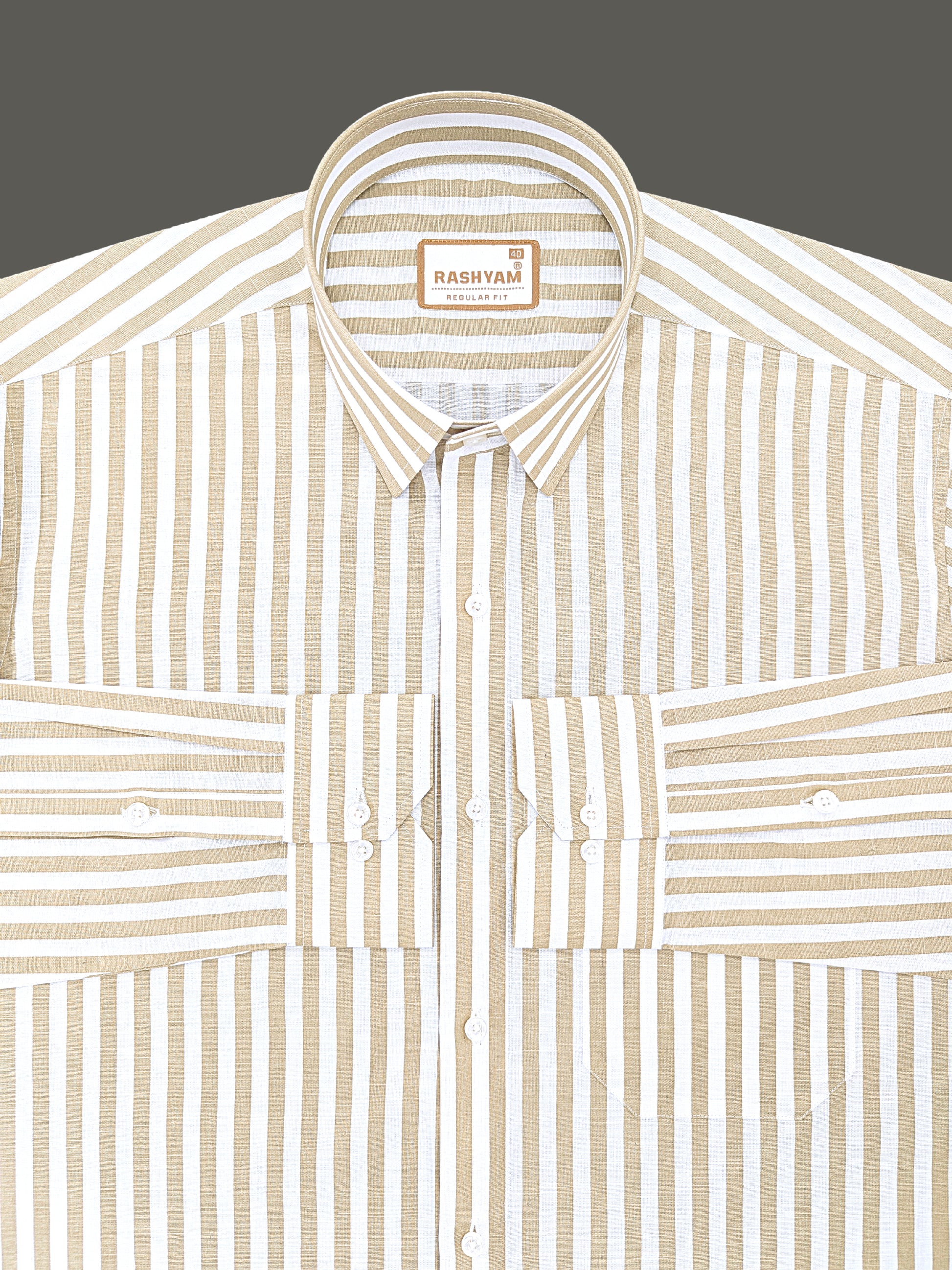 Premium Linen Cotton Bluish Light Line On Cream Shirt For Men