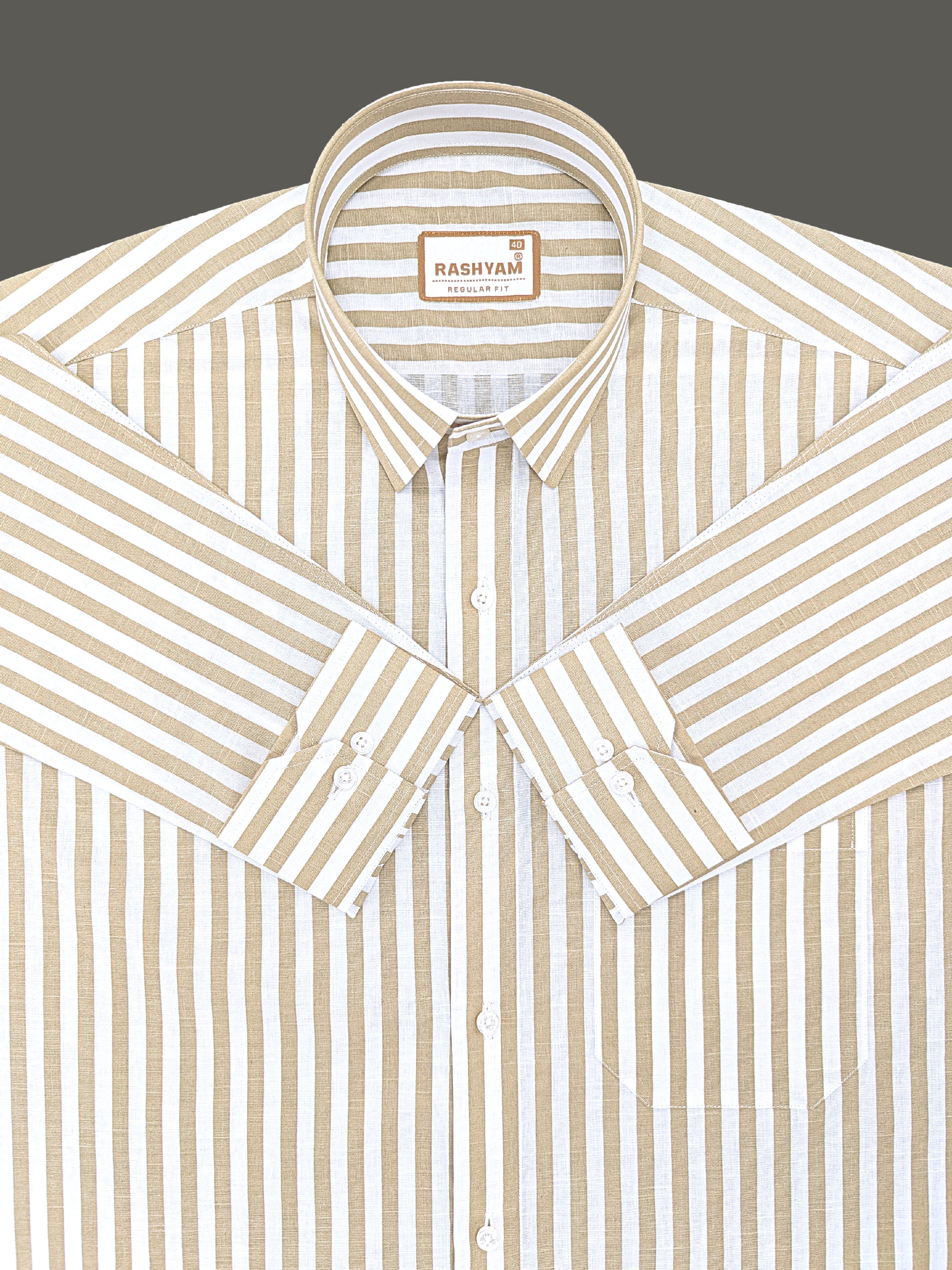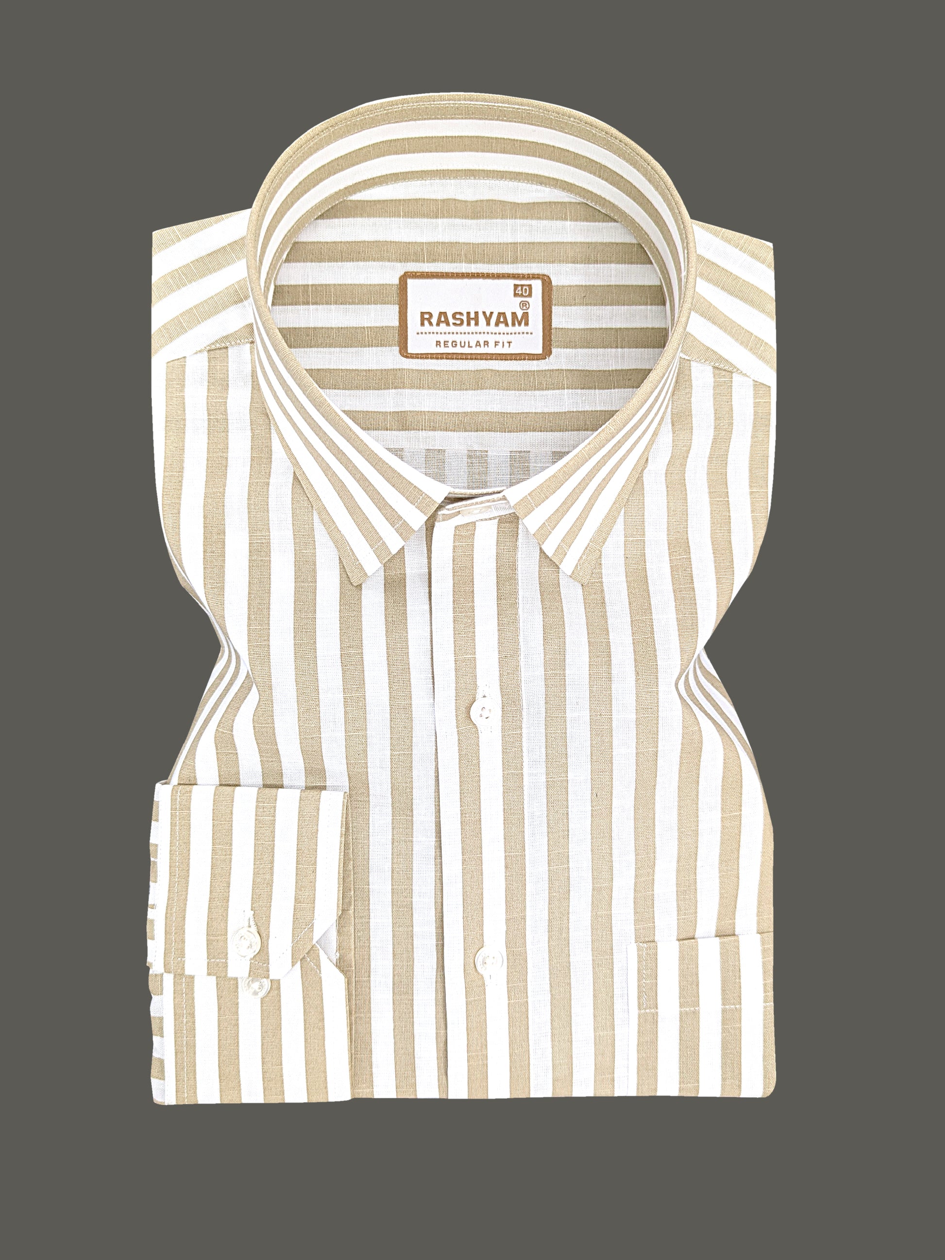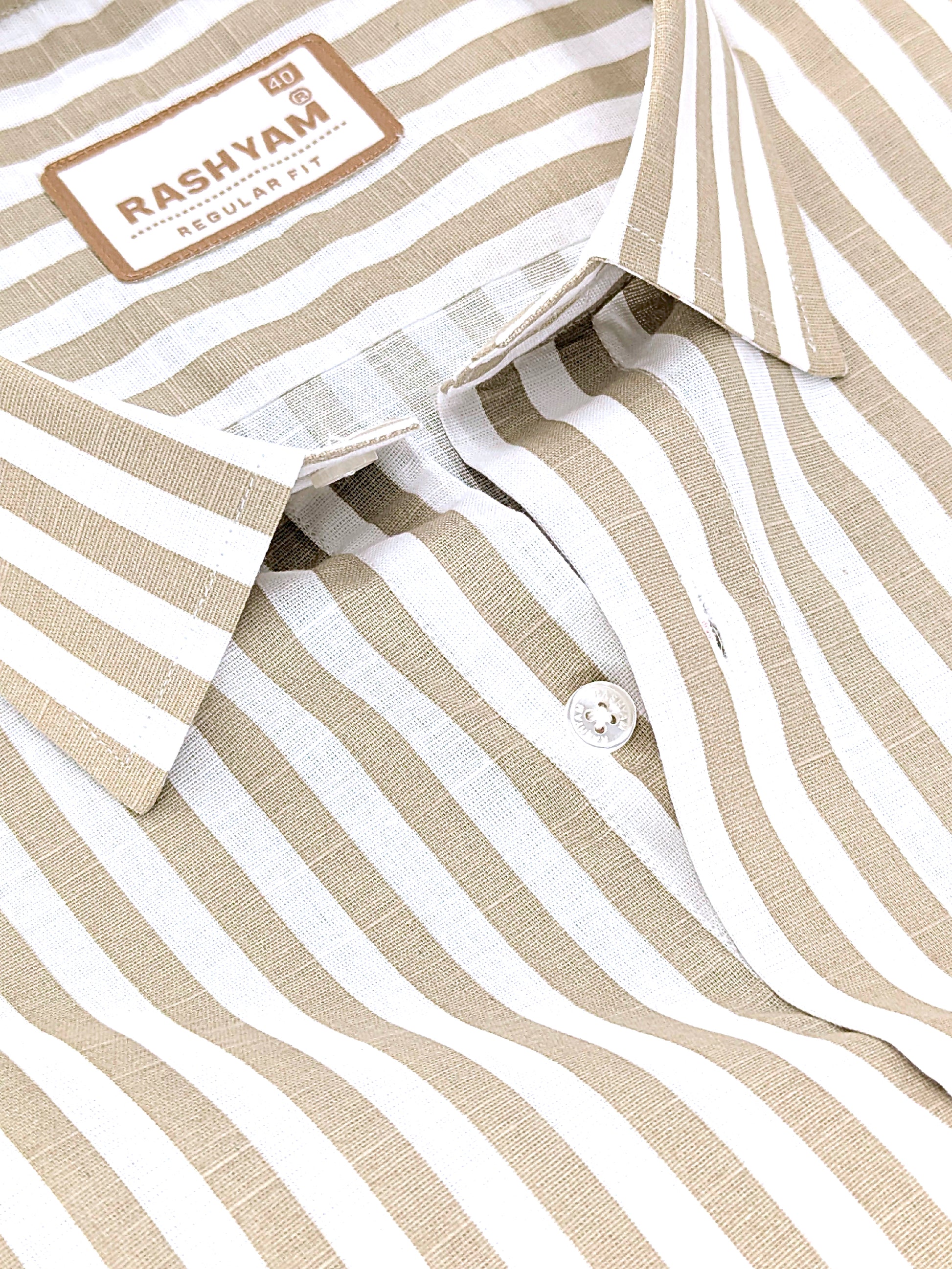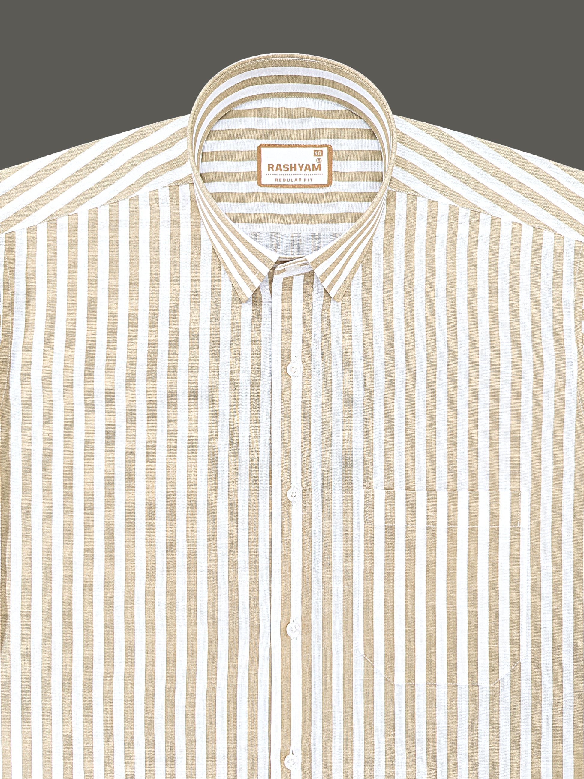 Premium Linen Cotton Brown Line On White Shirt For Men