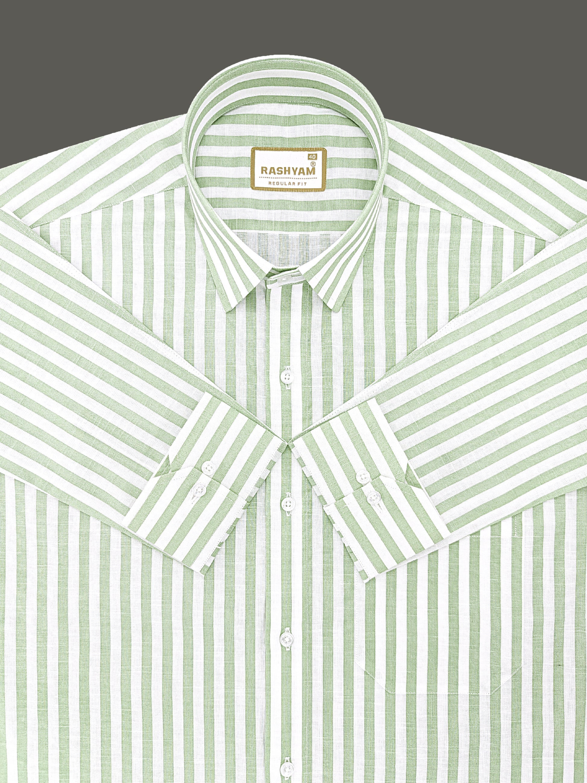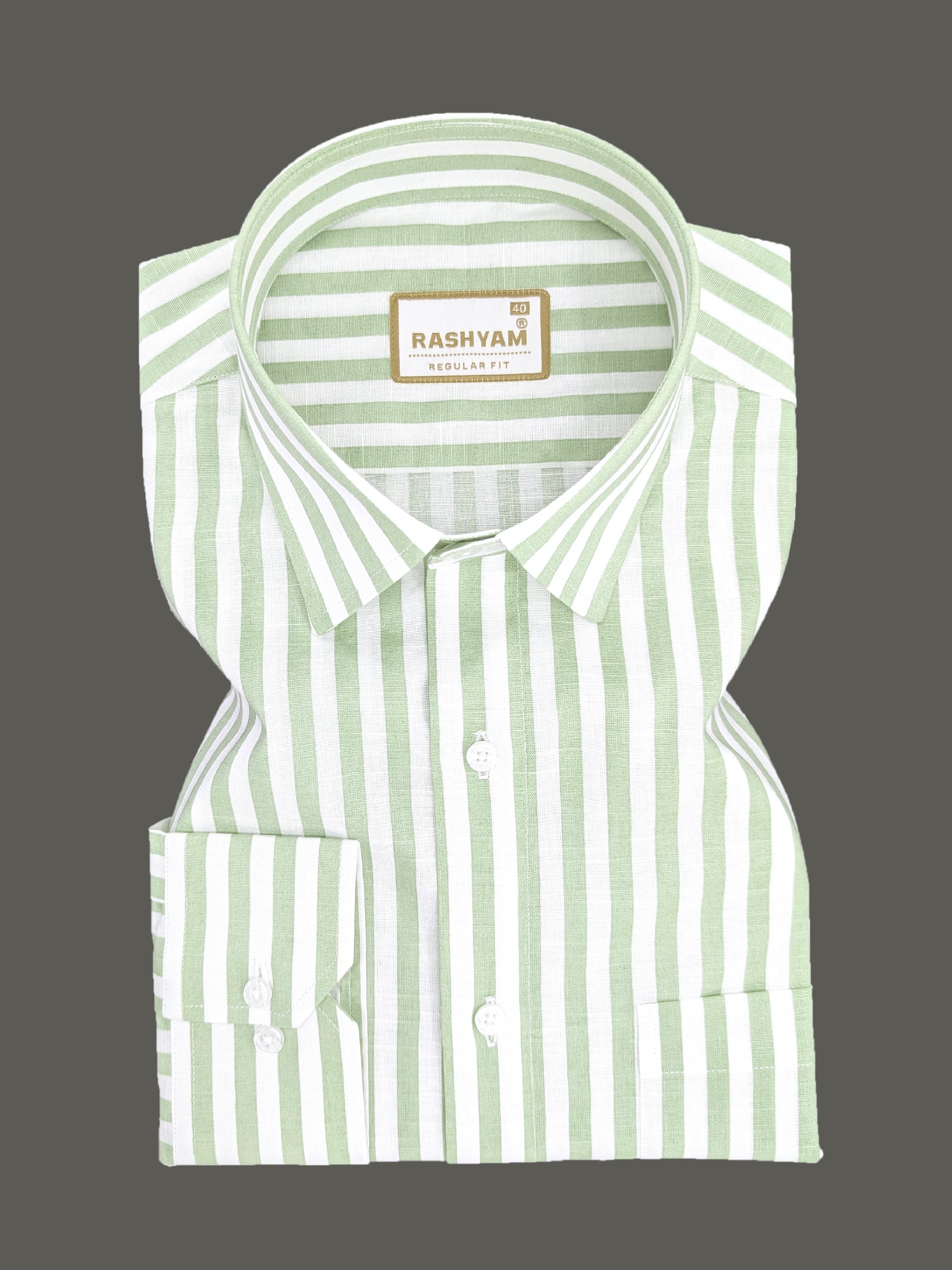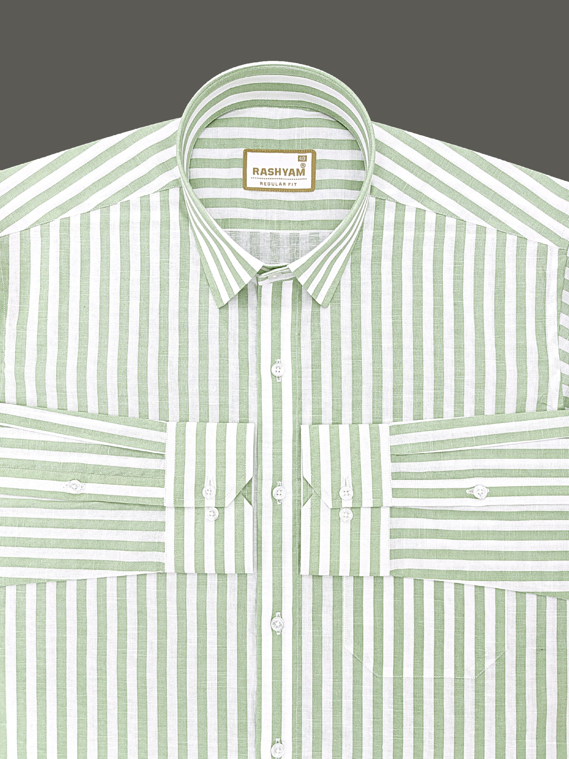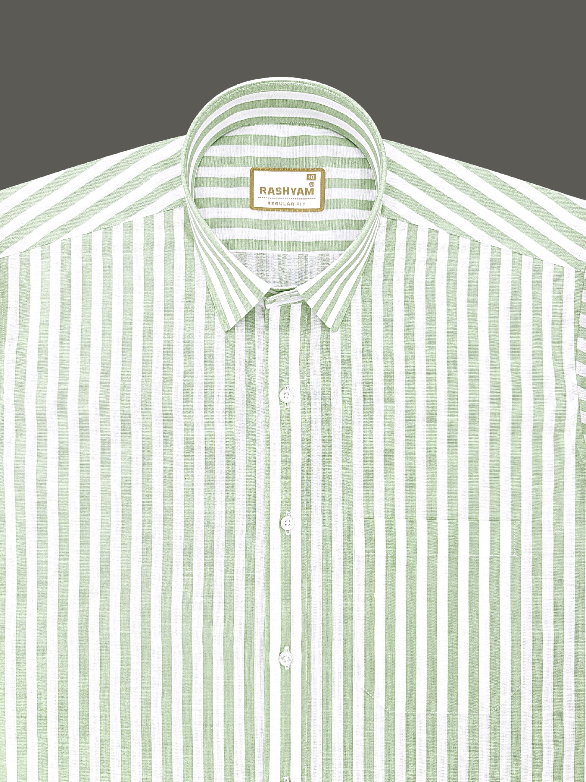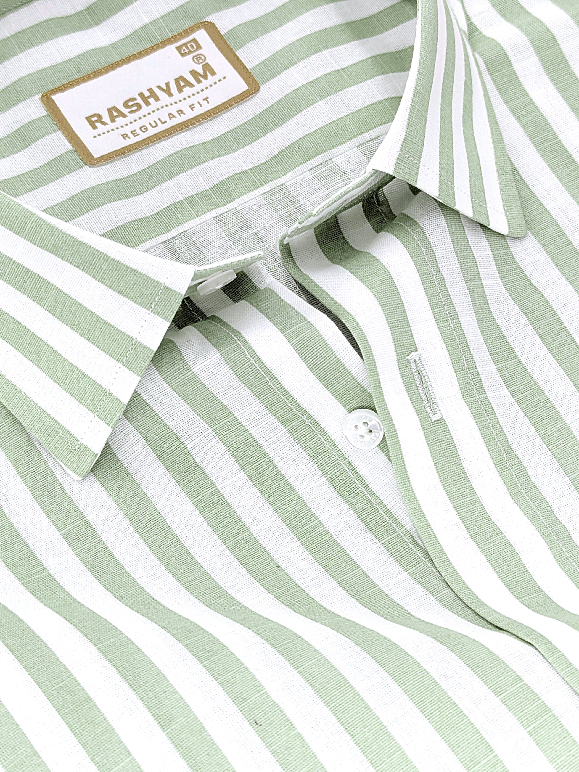 Premium Linen Cotton Greenish Line on White Shirt For Men