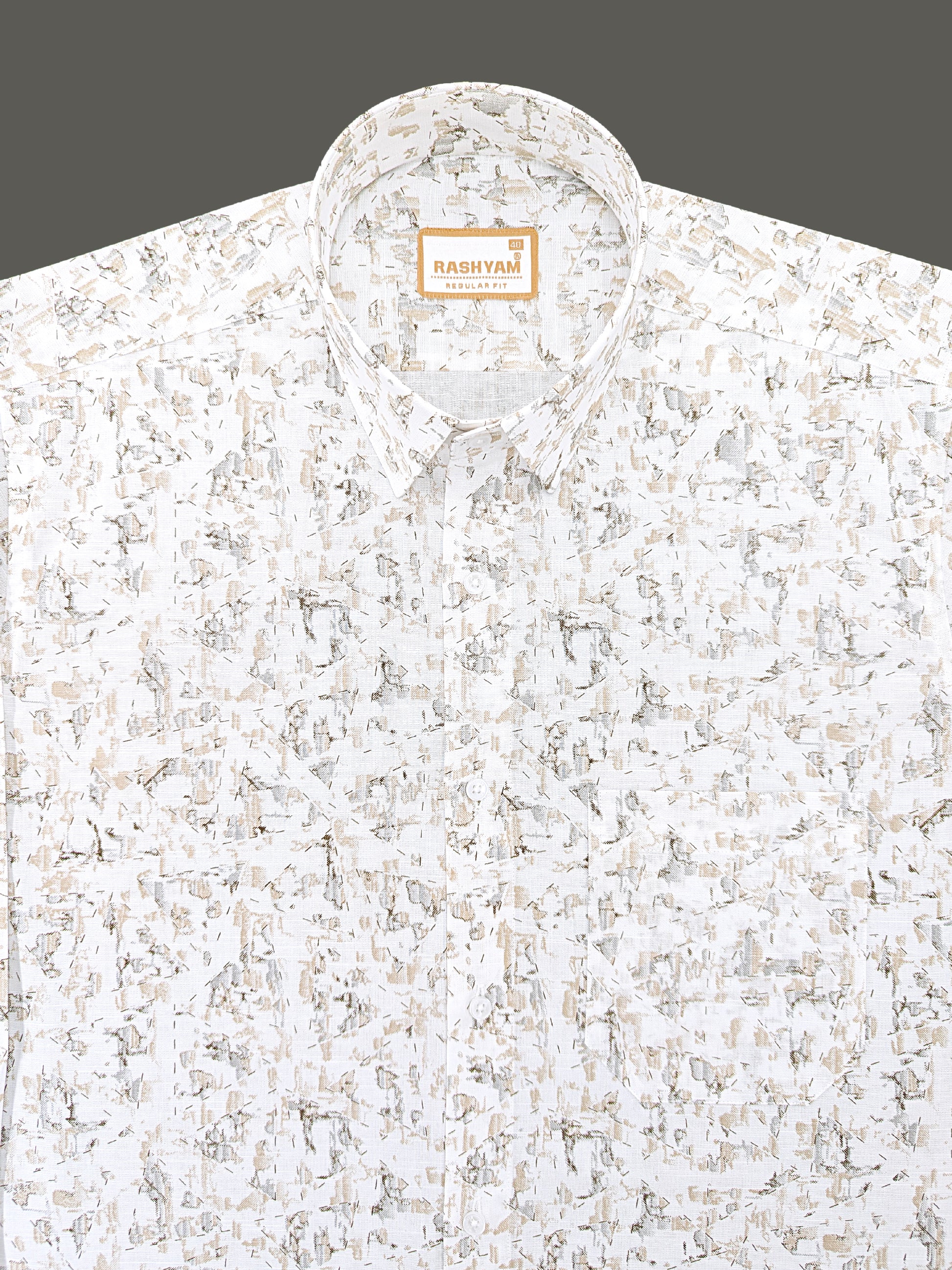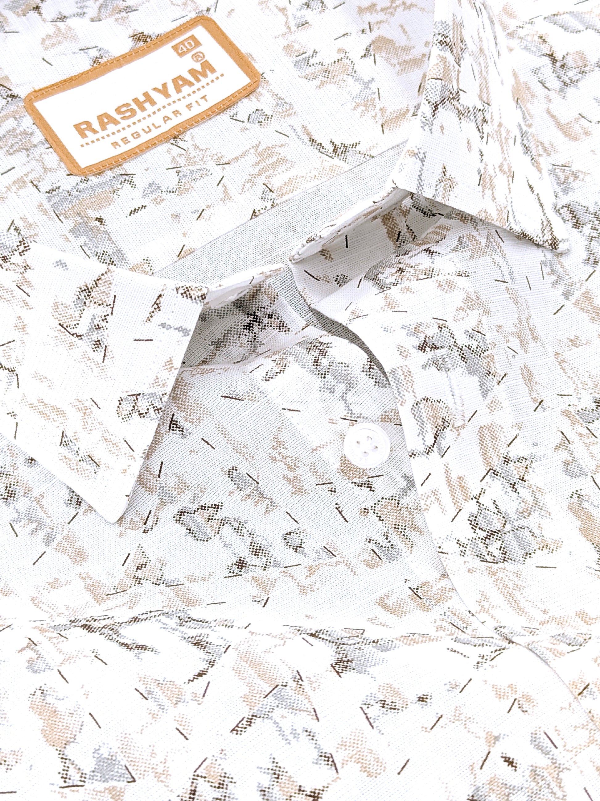 Premium Linen Cotton Latte Mist Print On White Shirt For Men