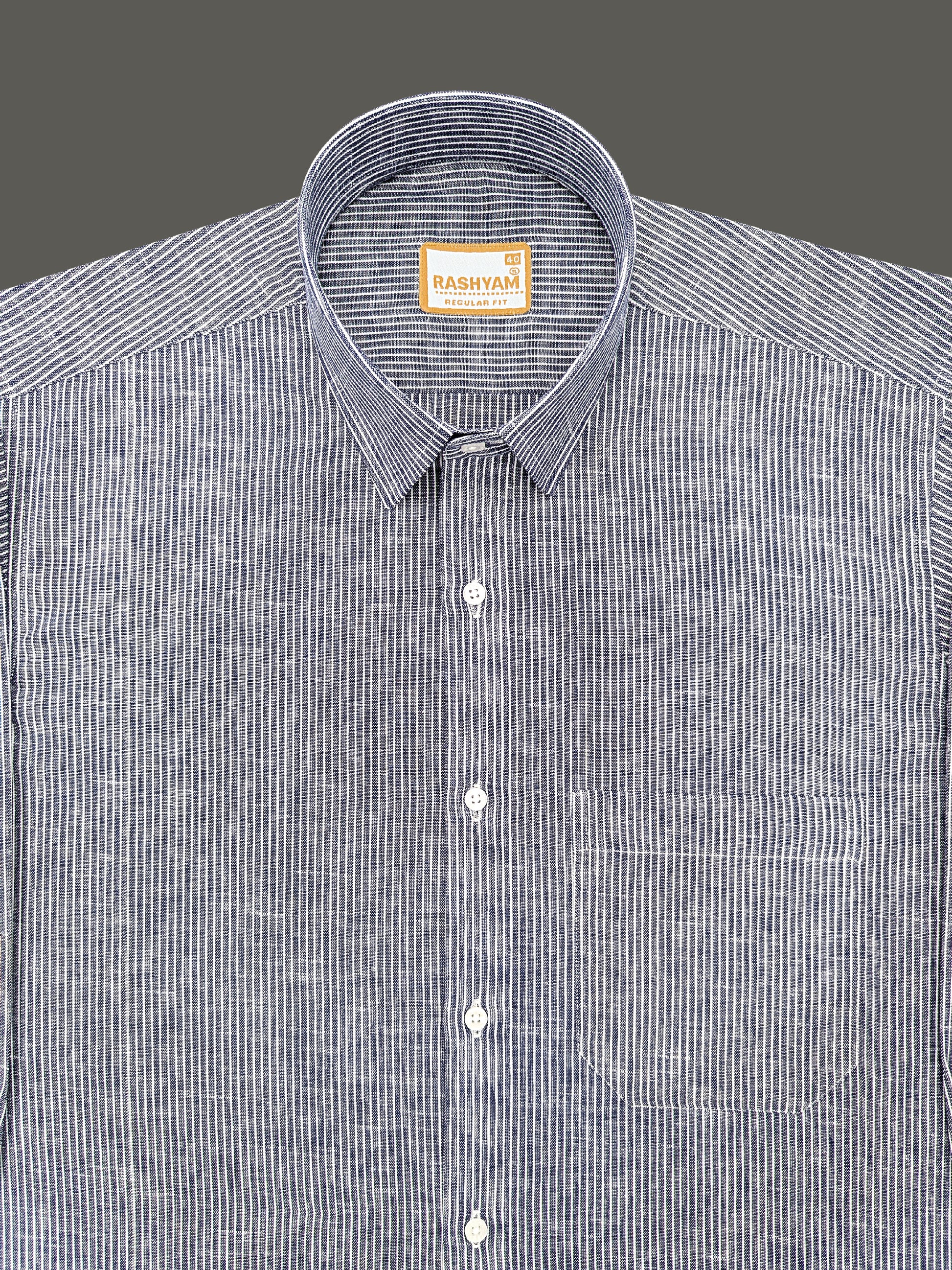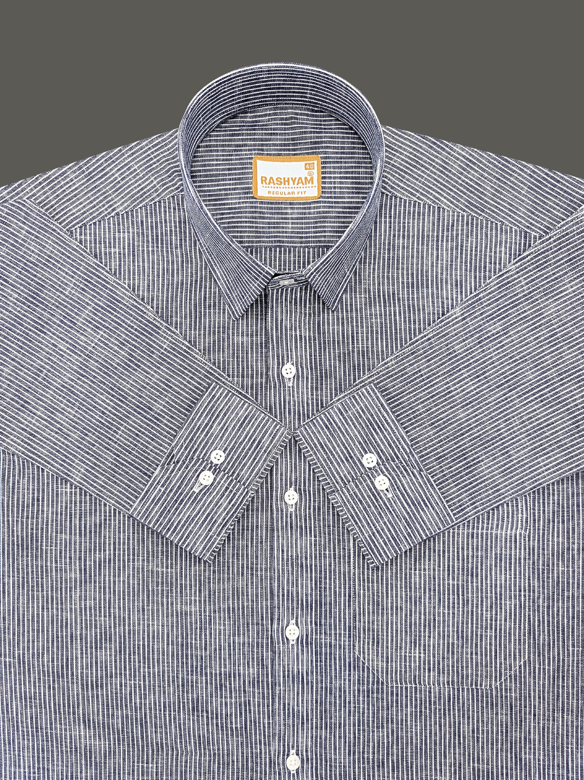 Premium Linen Cotton Multi White Line On Navy Blue Formal Shirt For men