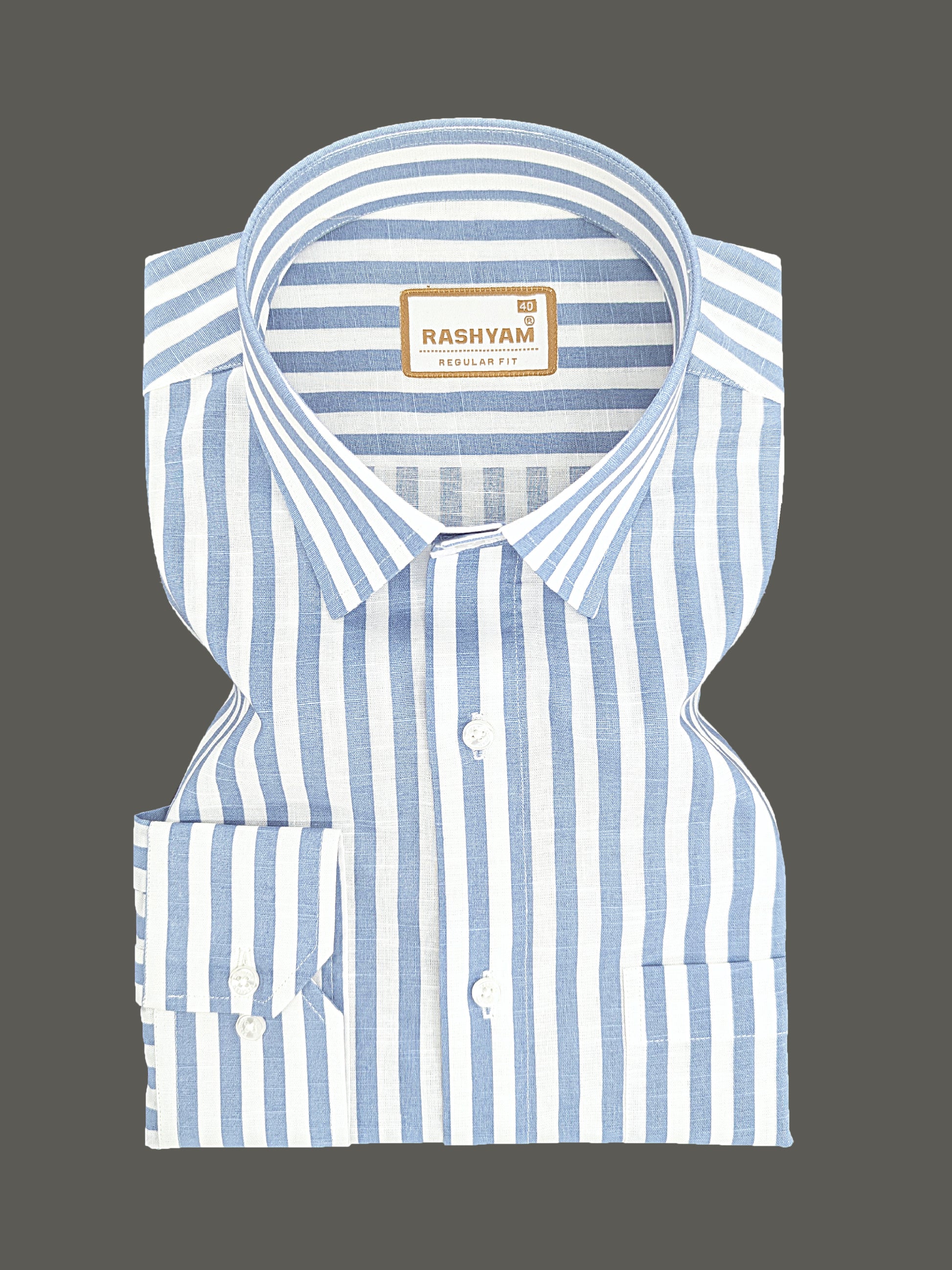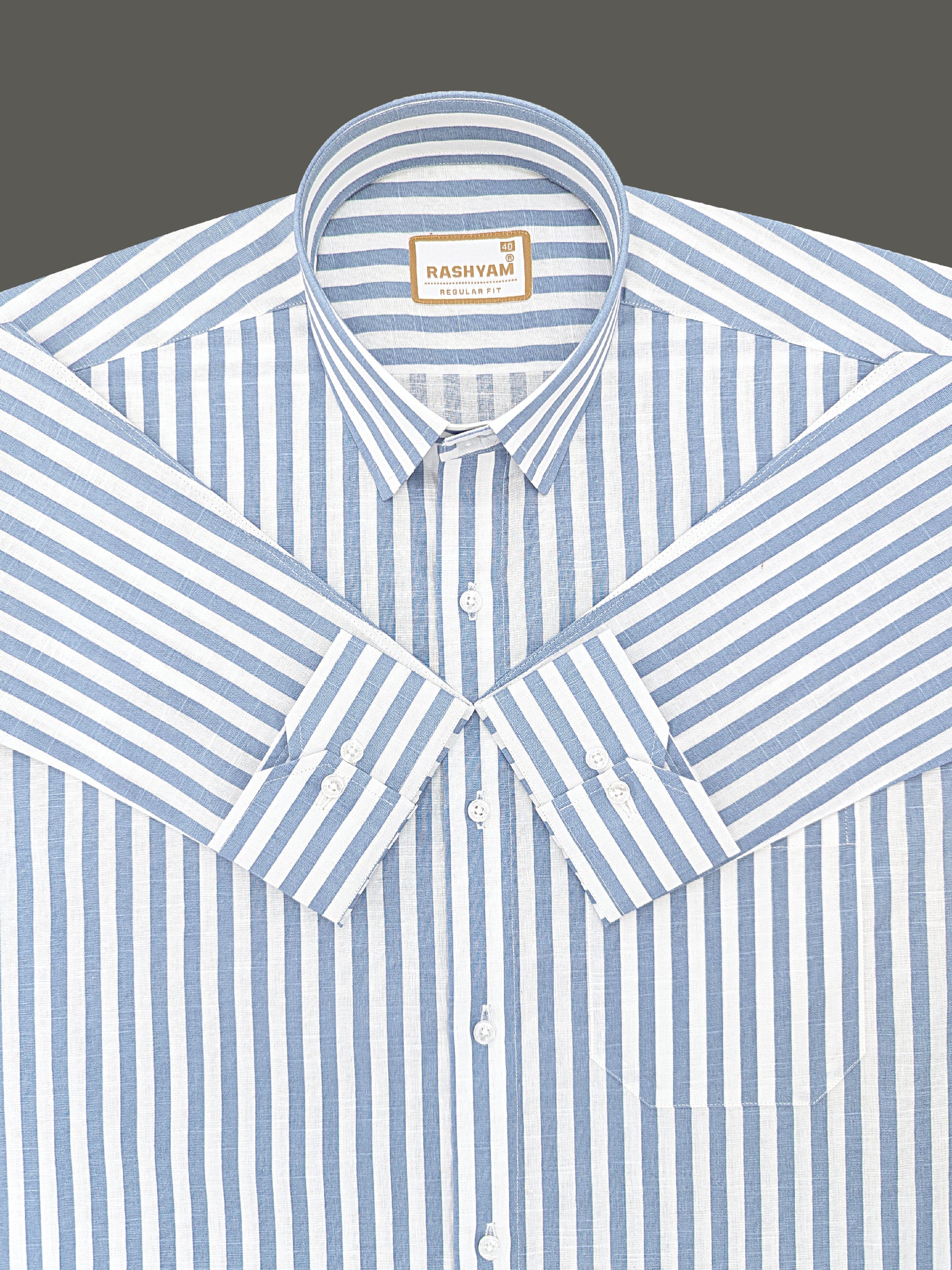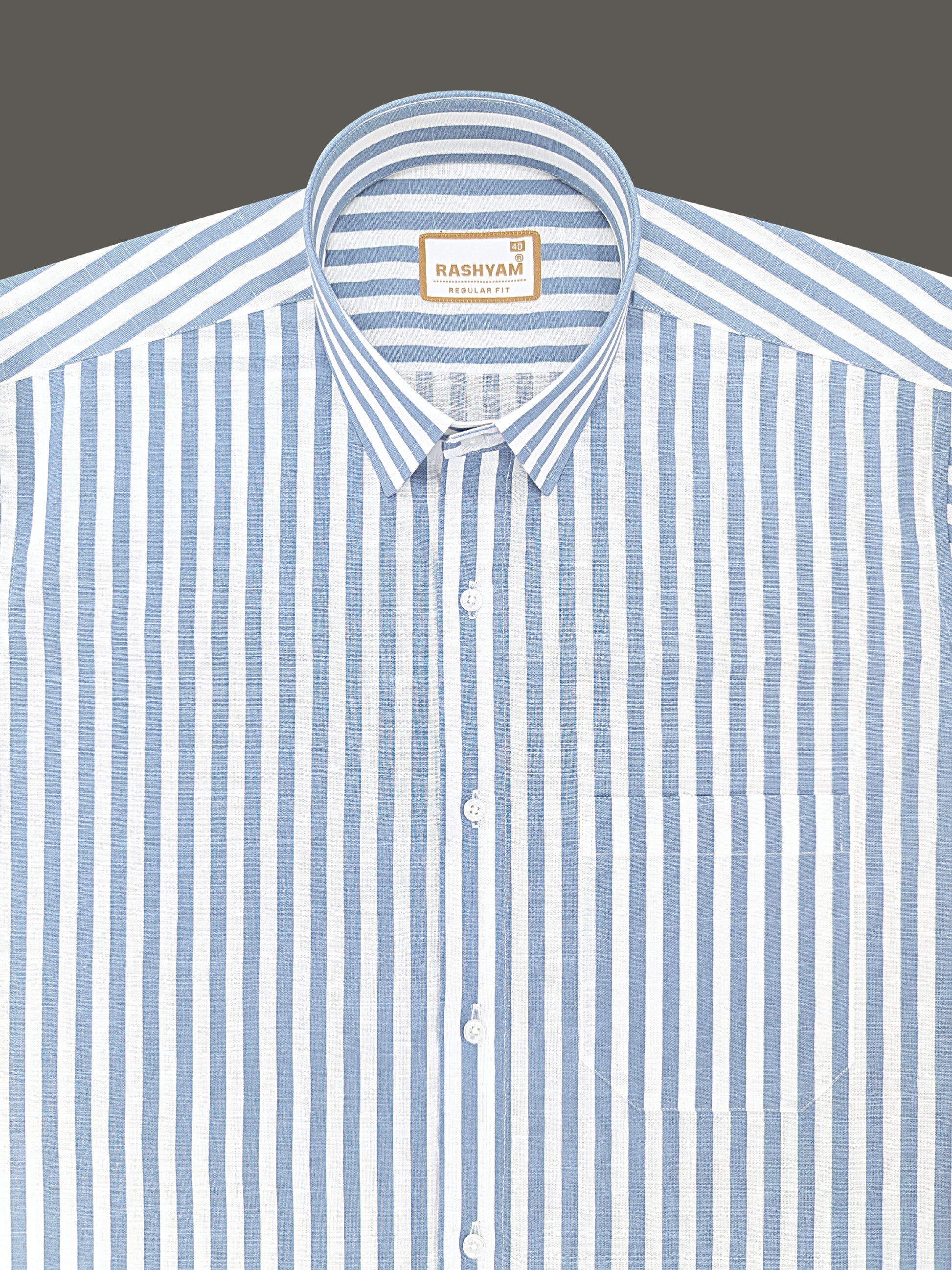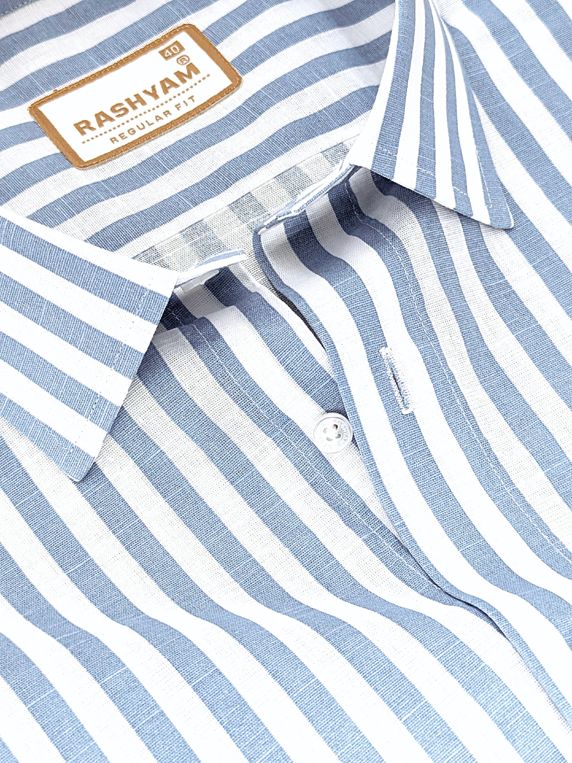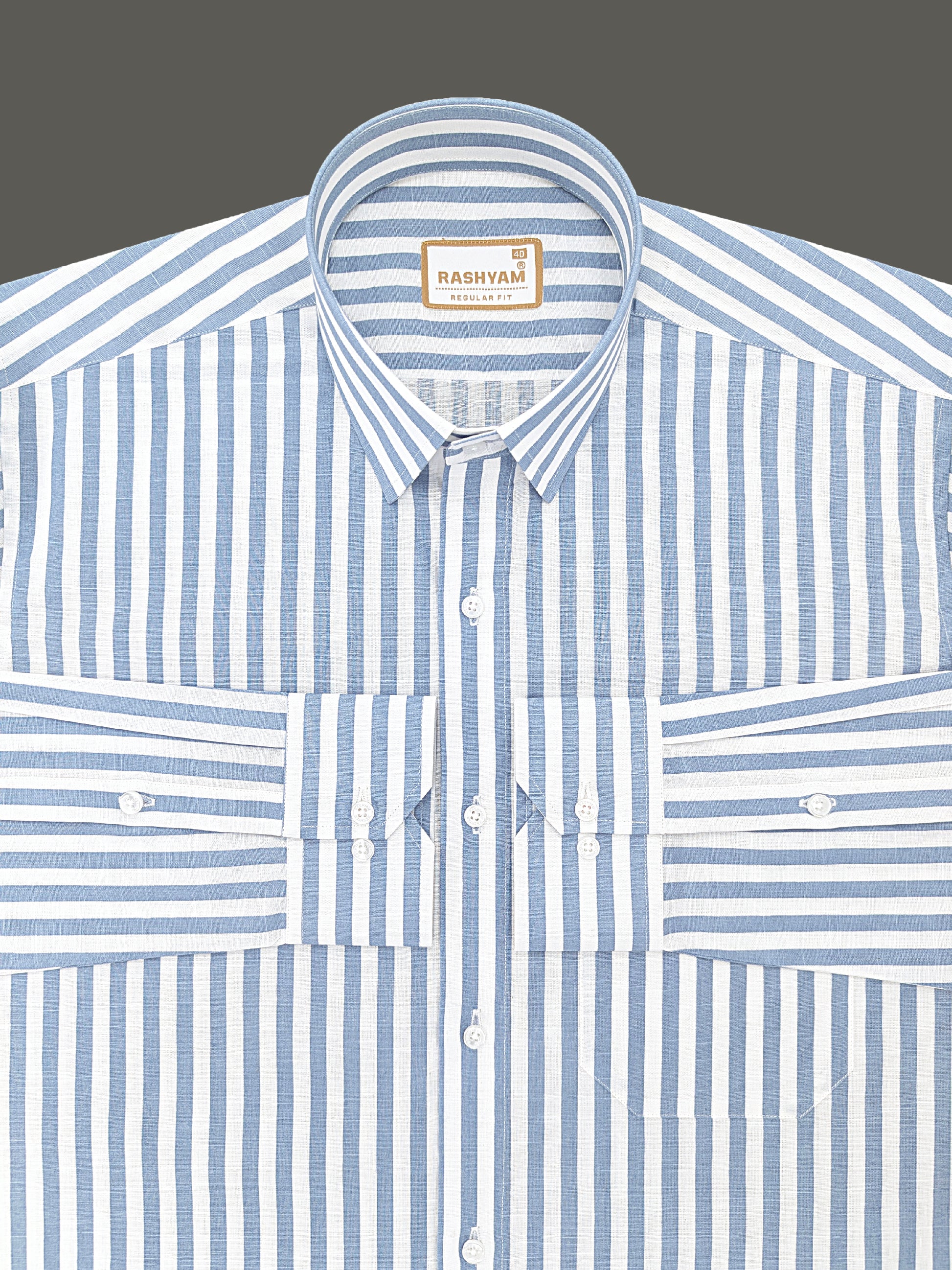 Premium Linen Cotton Sky Blue Line On White Shirt For Men