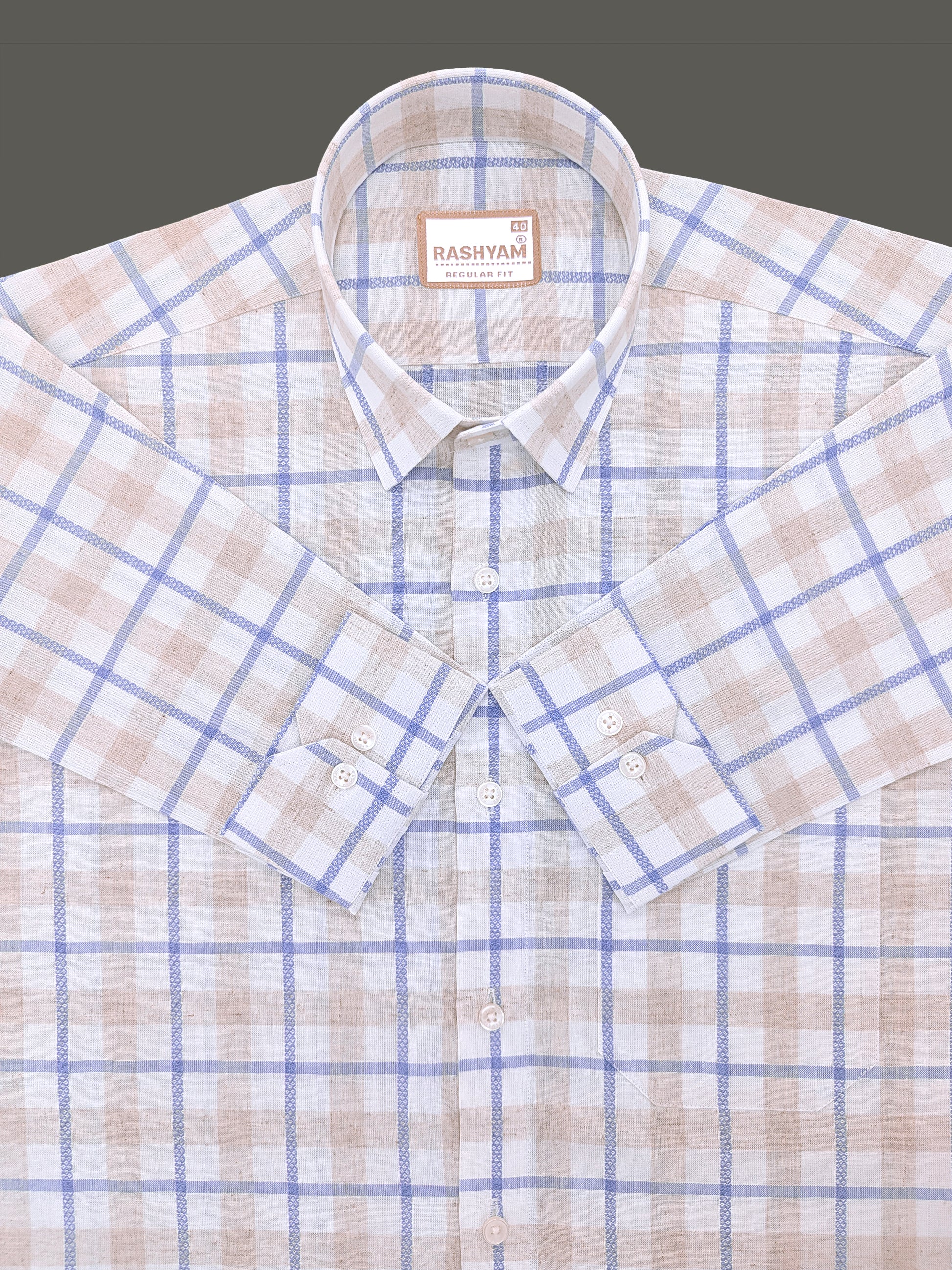 Premium Natural Linen Cotton With Powder Blue Checks