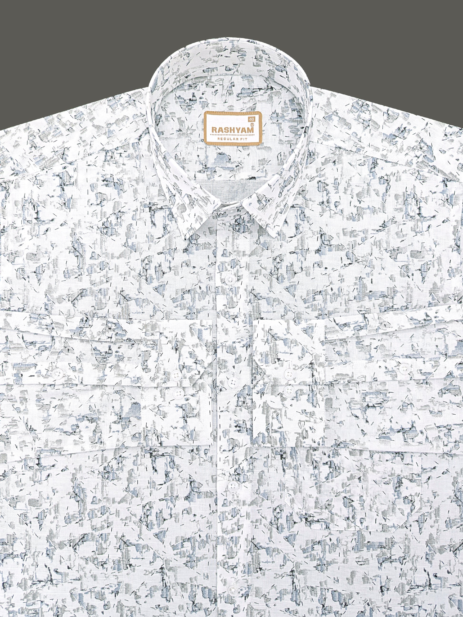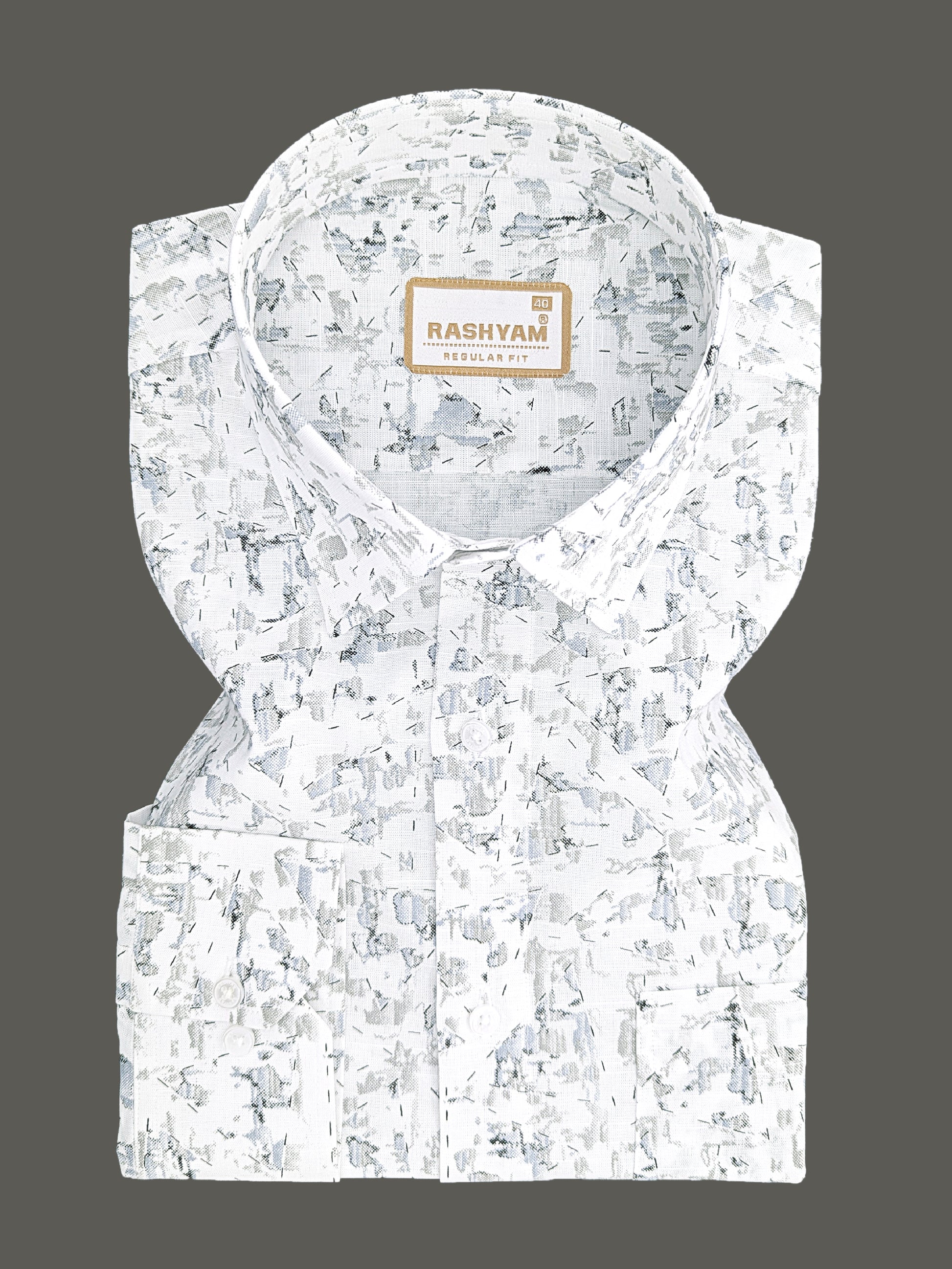 Premium Linen Cotton Abstract Mist Print On White Shirt For men