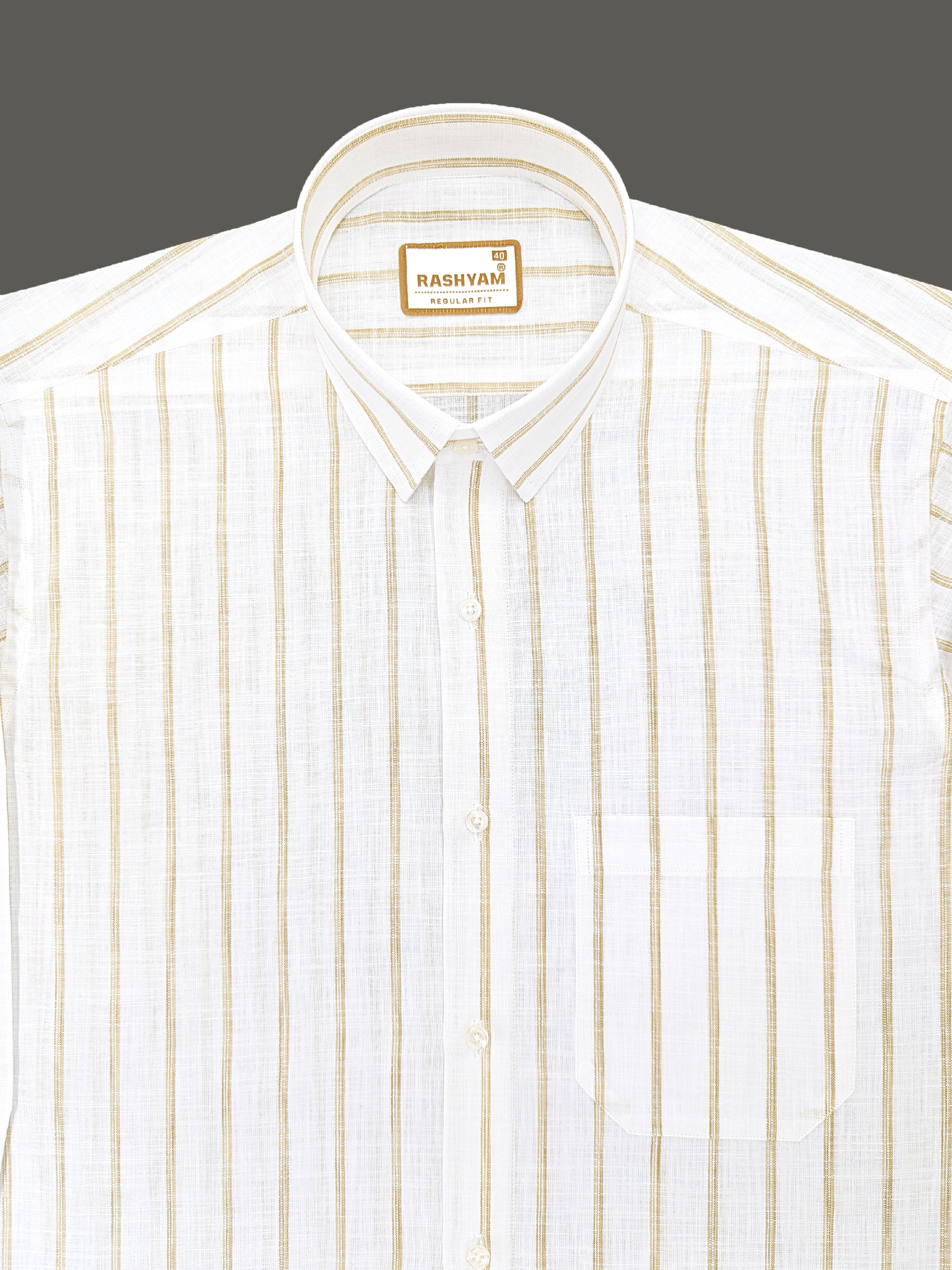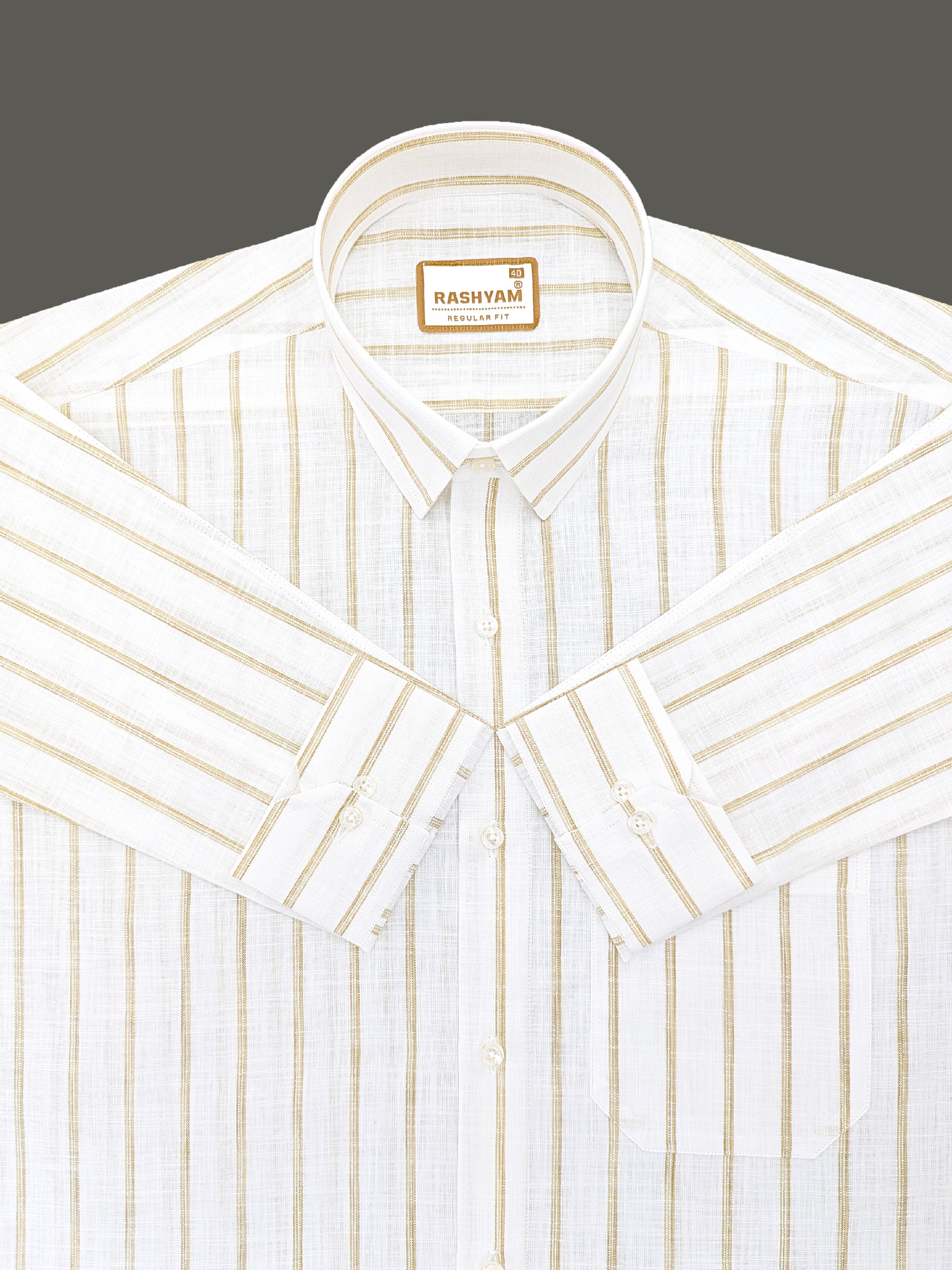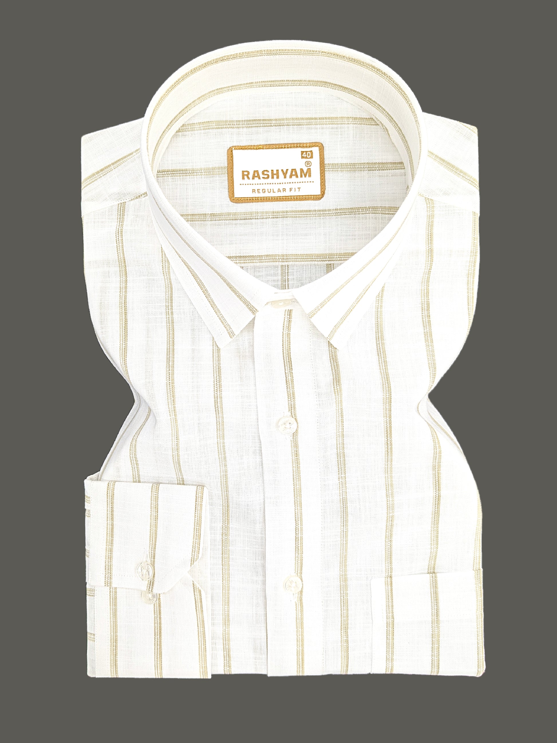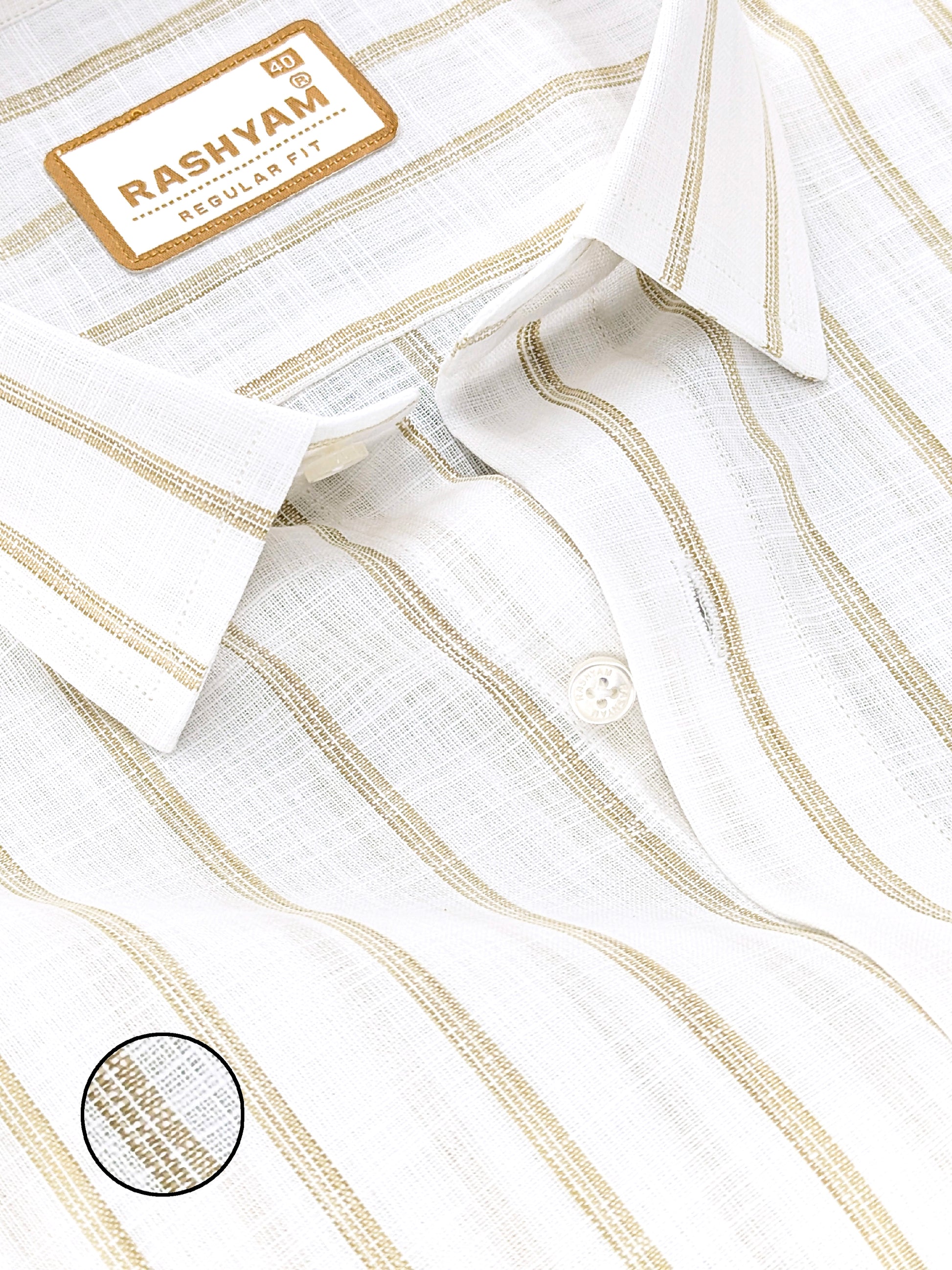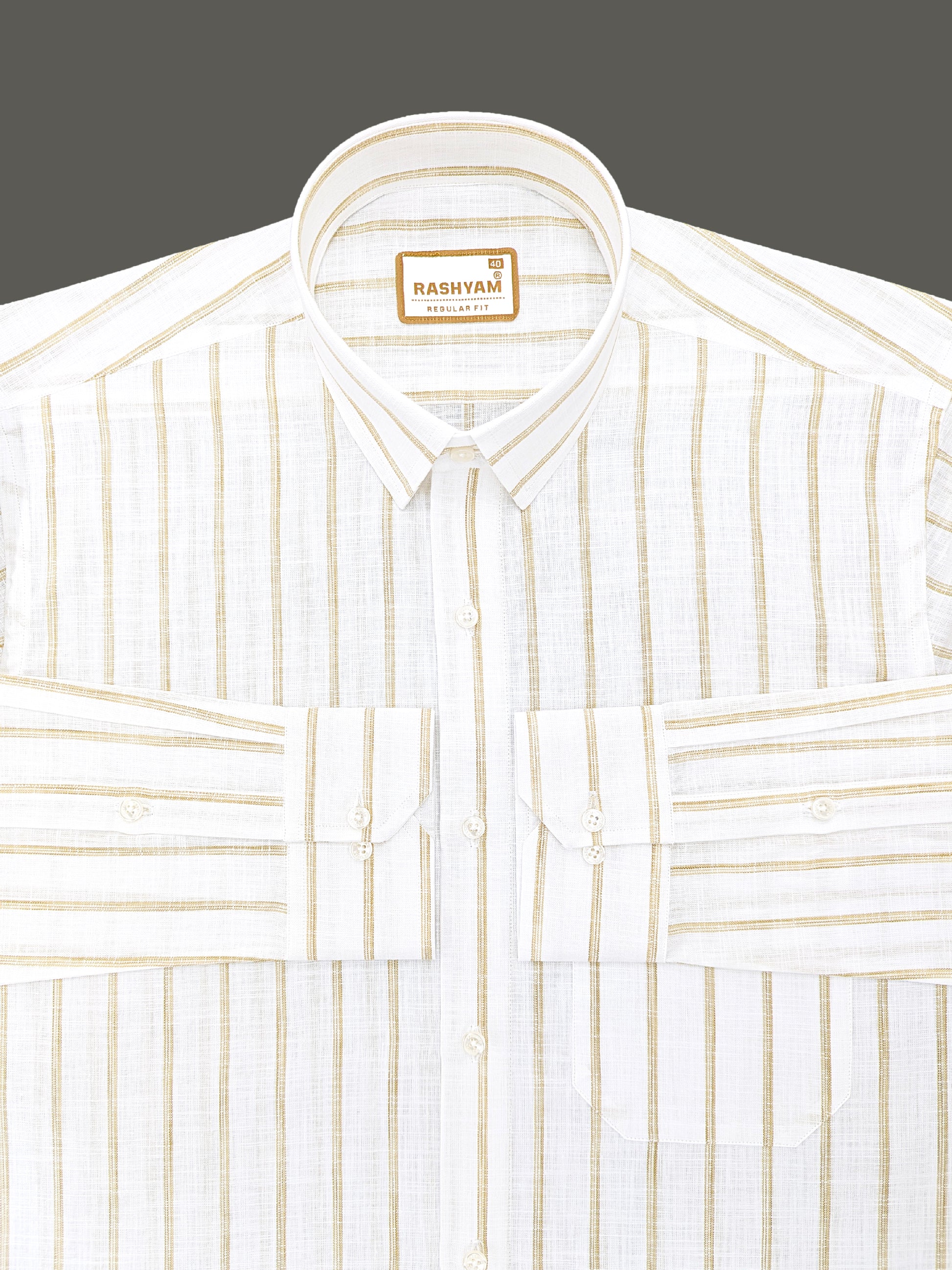 Abruzzo Premium Linen Cotton Beige And White Stripes Formal Shirt