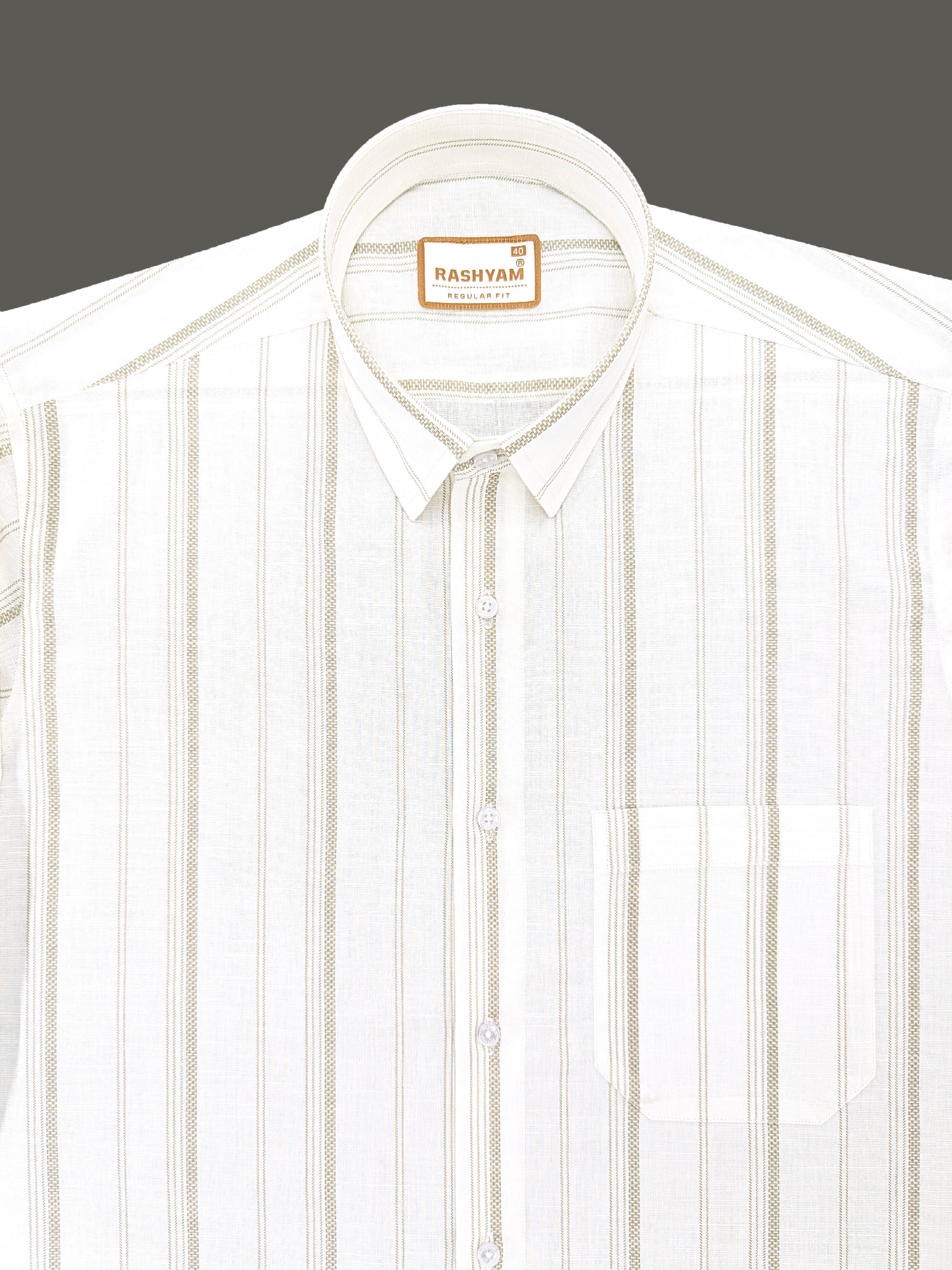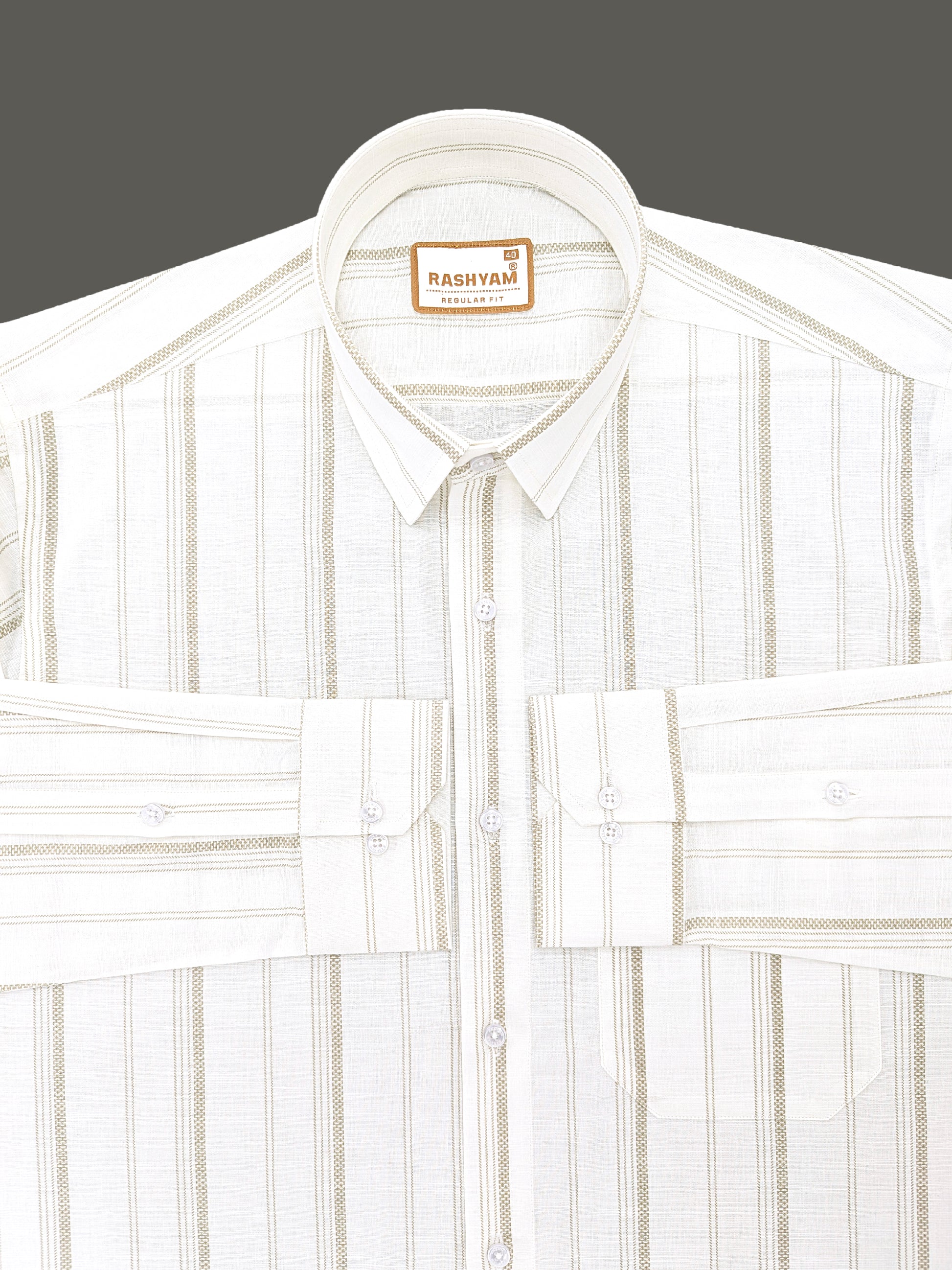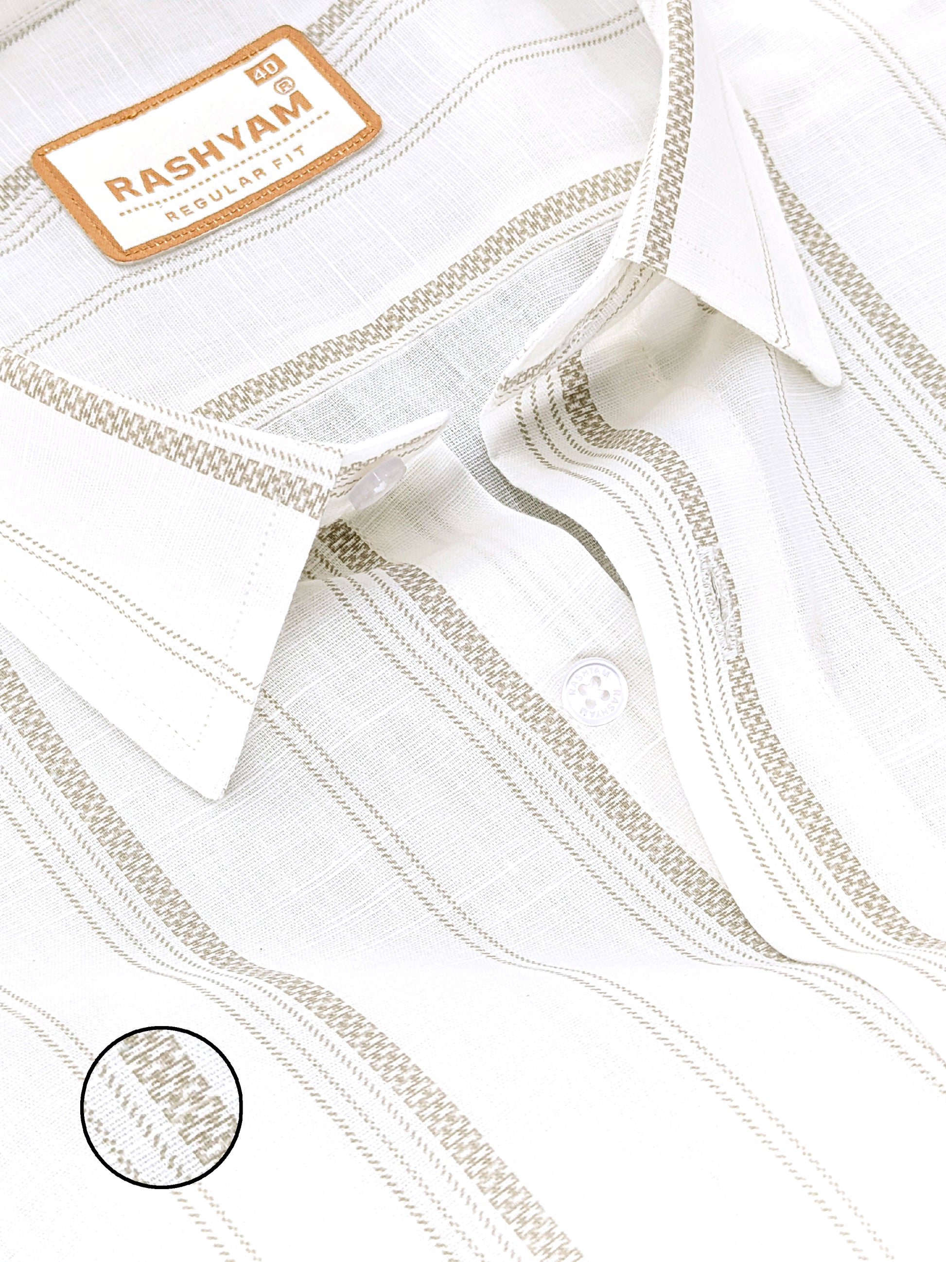 Abruzzo Premium Linen Cotton Beige And White Stripes Formal Shirt