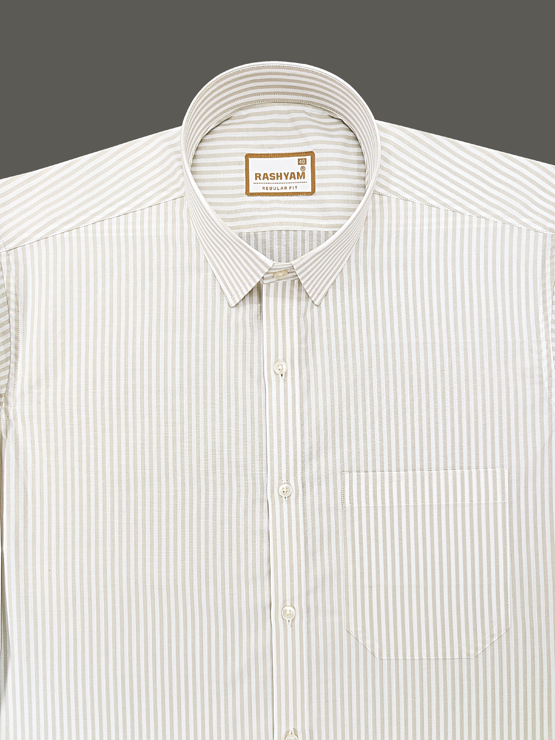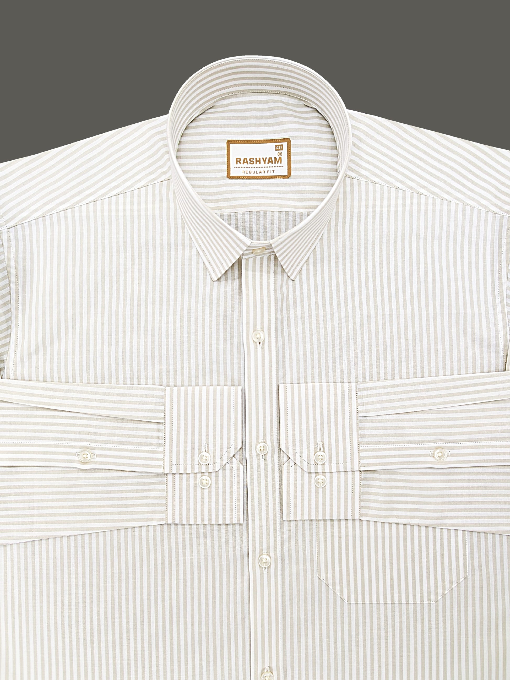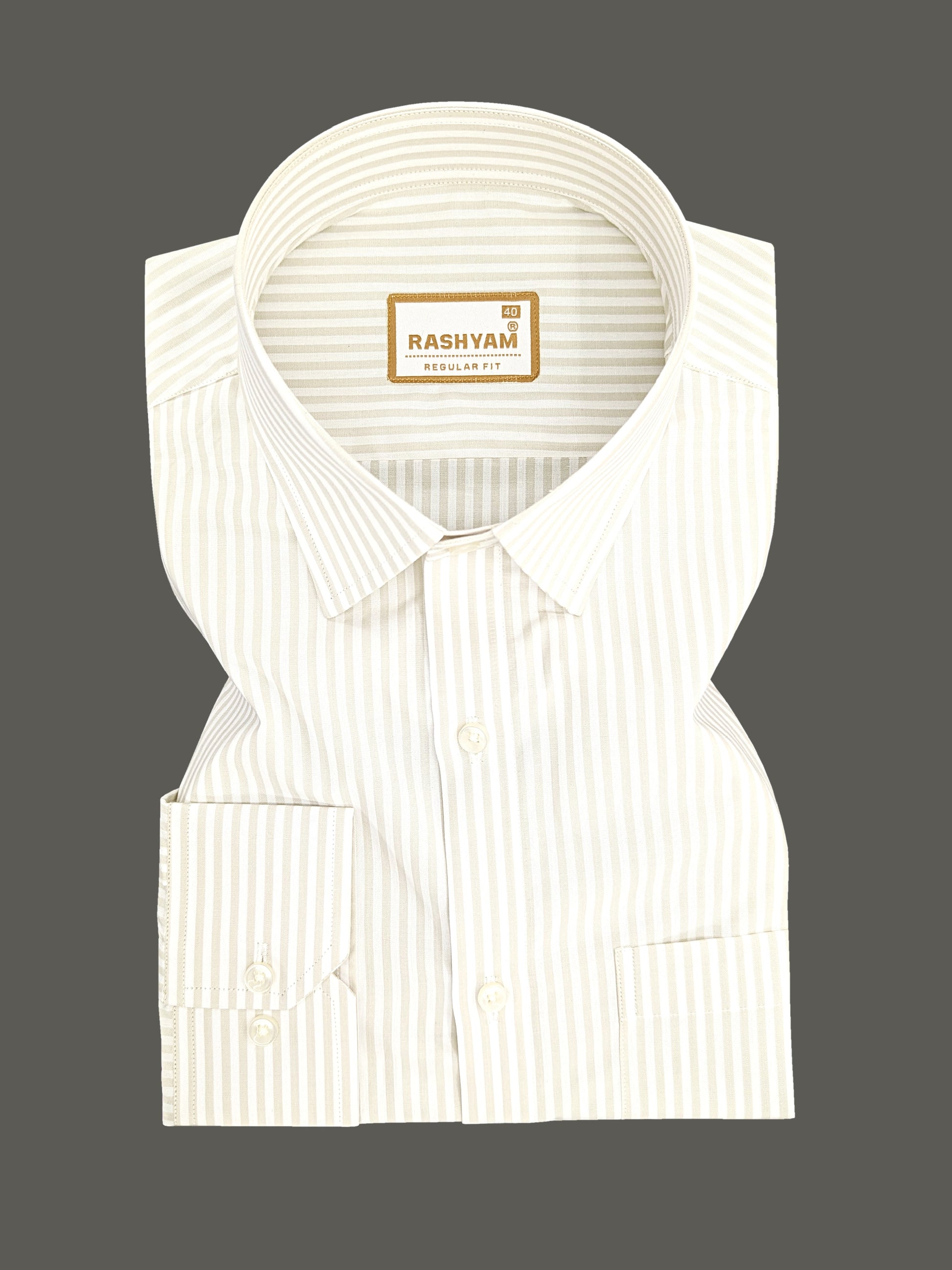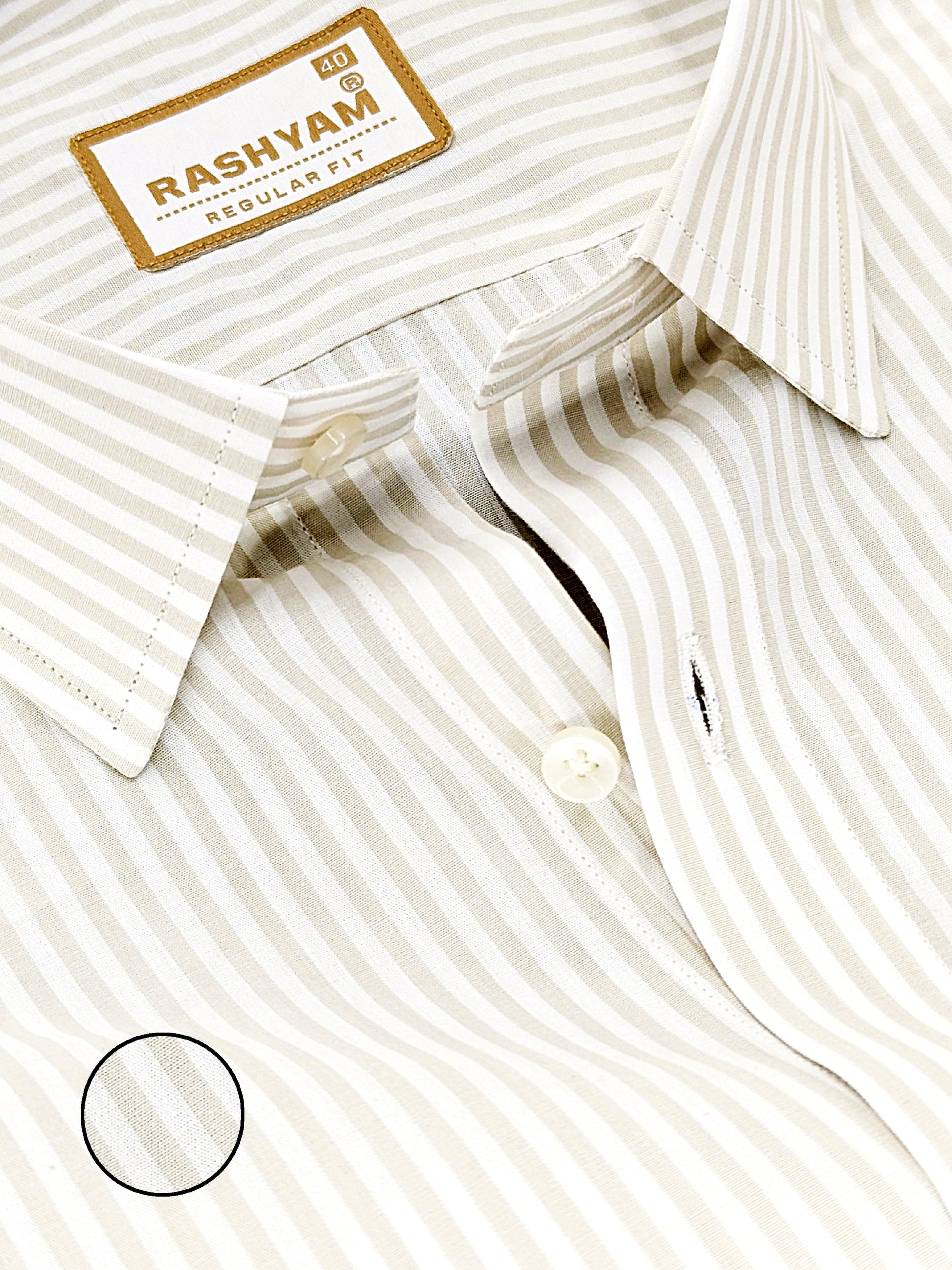 Premium Linen Cotton Bluish Light Line On Cream Shirt For Men