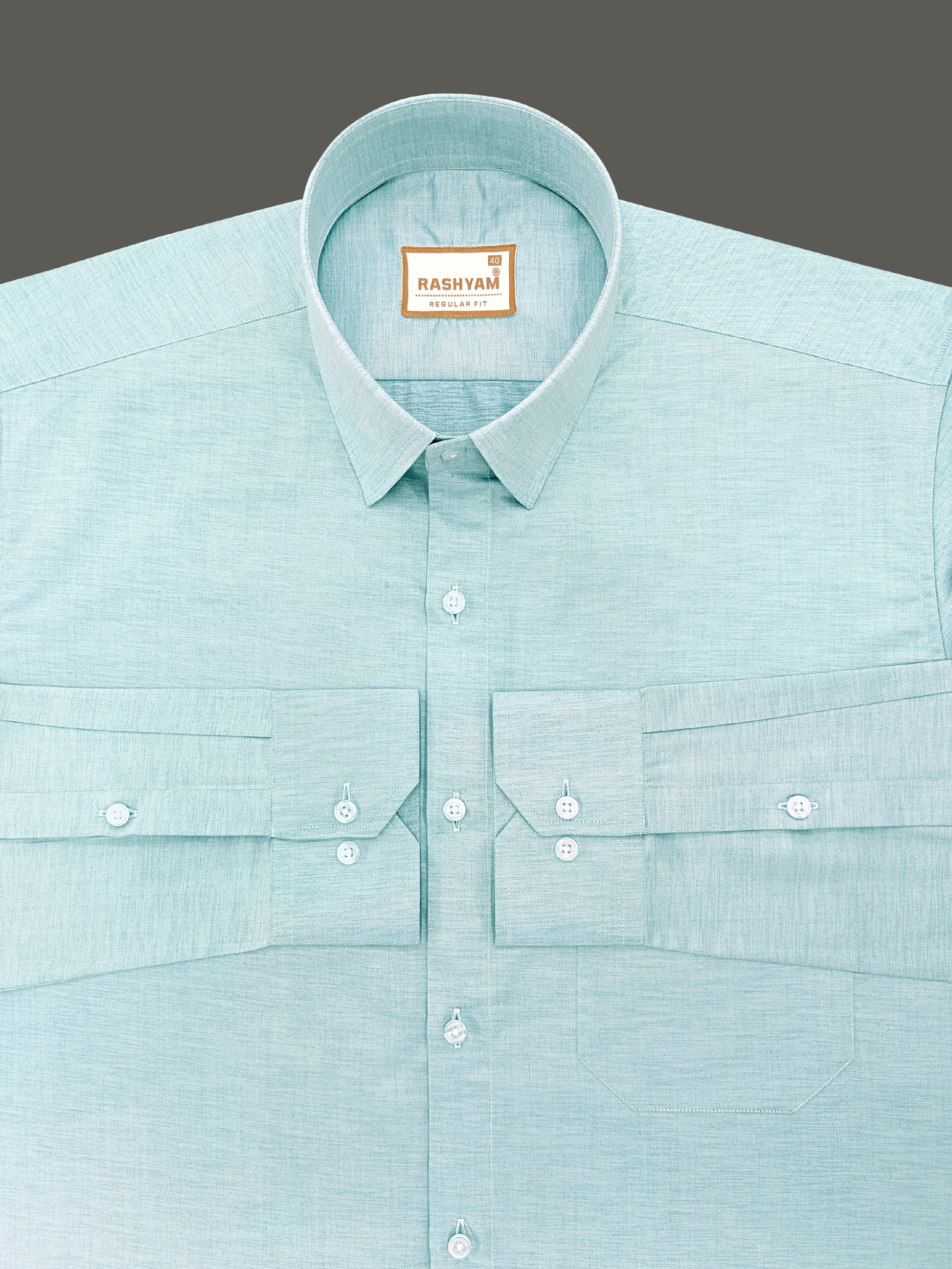 Premium Linen Cotton Greenish Cyan With Blue Checks Shirt For Men